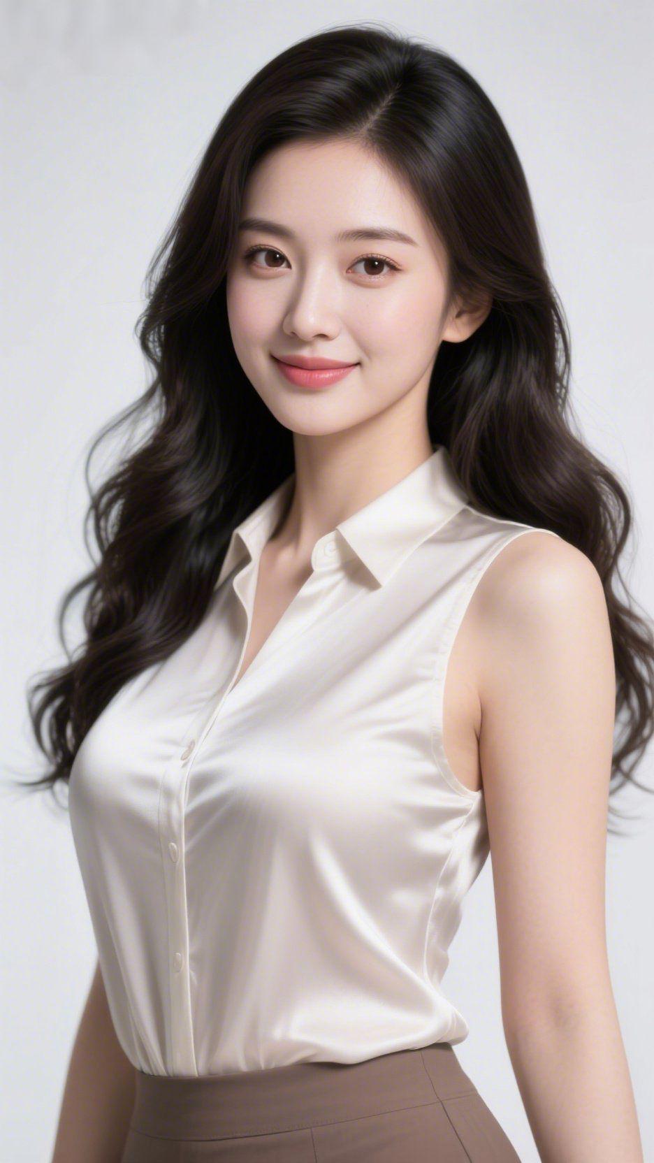 《柔光里的舒展》 她站在浅淡的光晕里,像把晴日的温风妥帖收进了衣装。无袖衬衫是揉软的月白绸缎,顺着肩颈铺展开柔和的轮廓,每处纹理都裹着轻浅的暖意。 发梢是未拢的云絮,垂落肩头时,连周遭的气息都漫开软意。笑意轻漾的瞬间,眼尾像落了细碎的星子——不是灼目的亮,是浸了春茶的温,裹着晒透的棉麻般的清宁。 这画面总勾连起某个松弛的午后:窗帘筛下的光轻搭杯沿,风掀书页时裹着茉莉的潮气,连时间都慢成了匀缓的呼吸。原来舒展的温柔从非刻意,是衣角轻晃时,漫出来的生活本真模样。 日常温柔感 松弛氛围