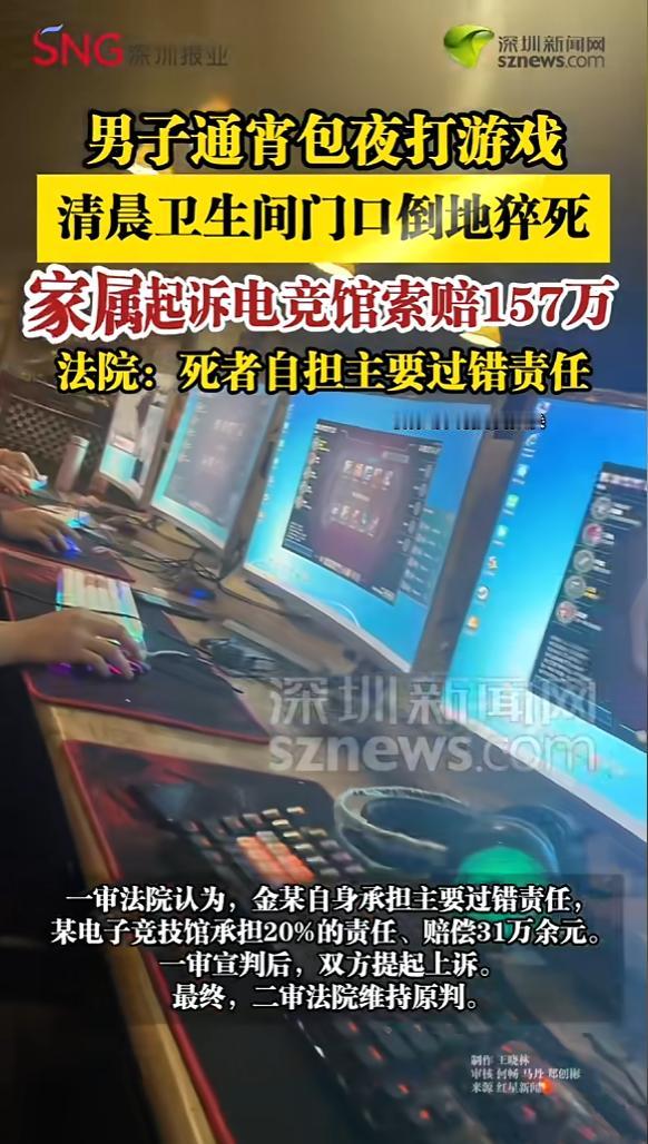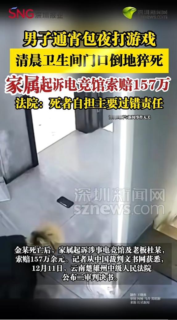 “冤不冤!”云南楚雄,一男子与朋友去网吧,相约通宵包夜打游戏,次日清晨在卫生间门男子突然倒地猝死,随后家属将网吧告上法庭,认为网吧没有尽到安全保障的义务,要求赔偿157万余元,法院:死者自担主要过错责任。 事情发生在 2025 年 2 月的一个深夜,楚雄的街头早已万籁俱寂,可这家网吧里却依旧灯火通明,喧嚣不止,金某和好友李某约好 “包夜”,天还没黑就钻进了网吧,坐在并排的机位上,一心沉浸在游戏的快感里,这种年轻人常有的娱乐方式,看似寻常,却藏着对身体的隐形考验,只是当时的金某完全没放在心上。 没人知道金某并不是什么 “钢铁之躯”,他早就患有高血压和脂肪肝,这两种基础病就像两颗埋在身体里的不定时炸弹,通宵熬夜本就是对身体的高强度透支,再加上游戏里的视听刺激,无疑是在给炸弹引线点火。 同行的李某大概是实在扛不住困意,到了次日清晨 6 点,理智地选择了回家睡觉,也正是这个决定,让他避开了随后发生的悲剧。 李某走后金某的兴致却没减,他没继续操作游戏,而是留在原地围观别人对战,丝毫没察觉自己的身体已经在发出预警,直到他准备起身去洗手间洗脸,打算打完这把就回家时,意外突然发生了,他在卫生间门口毫无征兆地倒了下去,冠心病急性发作引发的心源性猝死,瞬间夺走了他的呼吸。 可最让家属无法接受的,不是疾病本身,而是倒地后的那 20 分钟。作为人来人往的经营性场所,网吧的卫生间门口本不该是 “视线盲区”,但偏偏在这关键的 20 分钟里,没有工作人员发现倒地的金某,最佳抢救窗口期就这么白白流失了。 直到有其他顾客发现异常,工作人员才慌忙拨打 120 急救电话。等医生赶到时,金某已经没有了生命体征,再无回天之力。 家属认为,网吧作为经营者,有义务保障顾客的人身安全,没能及时发现倒地的金某并施救,就是疏于管理、未尽到安全保障义务,所以才提出了 157 万余元的高额索赔,既是为了弥补经济损失,也是想为逝者讨个说法。 可法院的审理却像一把精准的手术刀,切开了责任的核心,为什么判决结果和家属诉求差这么多?关键就在于 “成年人自担风险” 这个准则。 法院认为金某作为完全民事行为能力人,明明知道自己有高血压、脂肪肝等基础病,却依然选择通宵熬夜这种严重透支生命力的行为,这是对自己身体的不负责,也是导致悲剧发生的主要原因,所以他得自担主要过错责任。 那网吧的责任又在哪里?法院认定网吧虽然不用对金某的疾病本身负责,但作为经营性场所,必须对场内异常情况保持必要的警觉,金某倒地后 20 分钟才被发现,这说明网吧的巡视不到位,安全保障义务有缺失,这 20% 的次要责任无法推卸,所以才判决网吧赔付 31 万余元。 这个结果一出,网友们的看法瞬间分成了两派,有人觉得家属冤,好好的人在网吧没了,20 分钟没人发现网吧责任不小,157 万的索赔虽然高,但也情有可原,也有人觉得网吧不冤,死者自己明知身体不好还通宵,这是拿生命赌快乐,主要责任本来就该自己担,网吧已经承担了管理疏漏的责任,赔付 31 万已经合理。 其实这场悲剧没有真正的赢家,只有无尽的惋惜,法院的判决不是为了评判谁更冤,而是在重申一个简单的道理,成年人要对自己的行为负责,游戏再好玩娱乐再尽兴,也不能拿健康和生命当赌注。尤其是本身有基础病的人,更要守住身体的红线,通宵熬夜这种高负荷行为,看似是放松,实则是在透支生命。 网吧作为经营者,也确实该吸取教训,加强场内巡视,完善安全保障措施,多一个巡视的身影,可能就能多一次挽救生命的机会。 而对于我们每个人来说,这起案件更是一记警钟,身体是革命的本钱,别等到意外发生才后悔,那些看似不起眼的 “通宵娱乐”,可能藏着致命的风险,赔偿金能给生者一丝慰藉,却再也换不回逝者的生命,更换不回那个本该完整的家庭。 (信息来源:《【男子通宵包夜打游戏,清晨卫生间门口倒地猝死,家属索赔157万】》深圳新闻网)