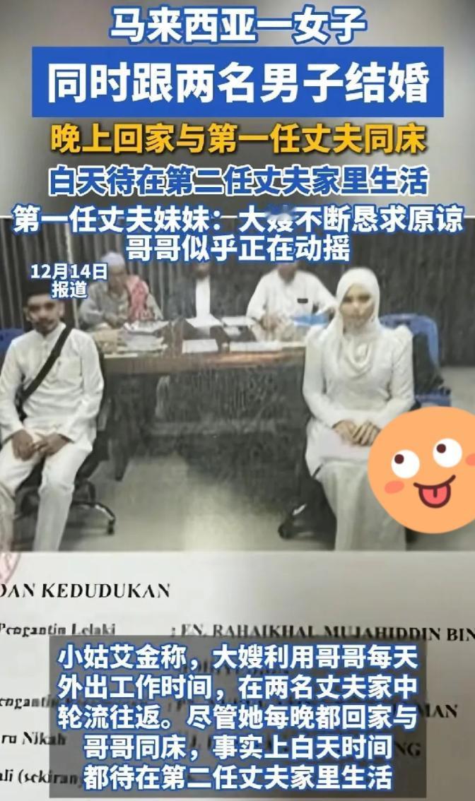 “不服不行”,马来西亚一女子同时和两名男子结婚,晚上和第一个丈夫一起睡觉,白天又跑到第二个丈夫家里生活,一来一去竟然没有一个人发现。 这位大嫂在马来西亚早就有了家庭,2016 年就和第一任丈夫结了婚,两人还有个六岁的孩子,在外人看来,她就是个普通的家庭主妇,日子过得平淡安稳,可谁也没想到,她在泰国还有另一个 “家”,甚至在去年 11 月,还和那边的男人领了合法的结婚证,光明正大地成了 “双婚妻子”。 能把这种 “刀尖上跳舞” 的日子维持这么久,她的心思简直细到了极致,为了不穿帮她特意准备了两部手机,铃声设置得完全不一样,通讯录里的备注也藏着玄机,生怕哪个丈夫突然来电露了馅。 更绝的是,她还跟两个丈夫都编了同样的借口,说自己从事的工作很特殊,作息不规律,严令禁止他们深夜打电话打扰,就这么靠着一个简单的谎言,杜绝了夜间穿帮的风险,一年多都没被怀疑。 在行程安排上,她更是算得明明白白,马来西亚的丈夫是个辛苦的打工人,每天不到六点就出门干活,而她总能比丈夫起得更早,趁着这段时间收拾好自己,拎着一个沉甸甸的袋子出门。 等到傍晚丈夫快下班了,她再准时回到家,两手空空地装作忙碌了一天的样子,完美利用了丈夫的作息时间差,挤出了去泰国的时间。 更让人佩服的是她的 “形象切换术”,在马来西亚的家里,她总是不施粉黛、穿着朴素,十足的家庭主妇模样,可一踏出家门,她就会找地方换上随身带的光鲜衣服,仔仔细细化个妆,摇身一变就成了另一种模样。这种巨大的反差,要是不仔细观察,还真难发现破绽。 不过纸终究包不住火,她的破绽最终还是被第一任丈夫的妹妹艾金察觉到了,艾金发现嫂子每次出门都说去邻村集市采购,可每次都打扮得像要去赴宴,而且出门一整天,回来却总是两手空空,这实在不合常理。 有一次艾金提出要陪她一起去集市,没想到嫂子瞬间慌了神,支支吾吾找了一堆借口,一会儿说集市人多拥挤,一会儿又说要去办别的事不顺路,语无伦次的拒绝让艾金彻底起了疑心。 于是艾金决定悄悄跟踪嫂子,看看她到底在搞什么鬼。这一跟踪,可把艾金惊得够呛,嫂子根本没去什么邻村集市,而是熟门熟路地去了跨境车站,过了边境检查站就进了泰国。到了泰国的一个居民小区,嫂子还掏出一把陌生的钥匙,熟练地打开了一户房门,门口鞋柜上甚至摆着她常穿的拖鞋,这显然就是她在泰国的 “家”。 艾金蹲守了三天终于摸清了真相,嫂子在泰国真的有另一个丈夫,她所谓的 “赶集”,其实就是趁着哥哥外出打工,跑到泰国经营第二个家庭,要知道不管是在普世价值观里,还是在马来西亚以伊斯兰教法为主的社会环境中,这种一妻二夫的行为都是严重的禁忌,更是违法行为。 查清真相后艾金带着警察和亲友团找到了泰国的那户人家,当场撞破了这场荒唐的双重婚姻,可让人没想到的是,这位大嫂被抓现行后,不仅没有丝毫羞愧,反而连夜逃回了马来西亚的家,霸占了主卧不肯走。 她抱着六岁的孩子当挡箭牌,哭着诉说自己和第一任丈夫八年的情分,还倒打一耙,指责艾金破坏家庭和谐,甚至要报警控告小姑子骚扰。 更让人 “不服不行” 的是第一任丈夫在最初的震惊和愤怒过后,竟然被她的眼泪和亲情绑架给说动了,私下里流露出想要原谅她、继续过日子的念头,想想也真是离谱,一个欺骗了丈夫一年多、在两个国家同时结婚的女人,仅凭几滴眼泪就想抹平所有背叛,而被蒙在鼓里最深的老实人,竟然还真的动摇了。 这场跨国双重婚姻的闹剧,真的让人不得不感叹这位女子的 “本事”,能把两个家庭骗得团团转,维持一年多不被发现,这份心机和胆量,确实让人 “不服不行”。 但再精明的隐瞒也终有暴露的一天,背叛和谎言终究不能长久,希望这位丈夫能清醒过来,也希望这样荒唐的事不再发生,毕竟婚姻的基础从来都是忠诚和坦诚。
