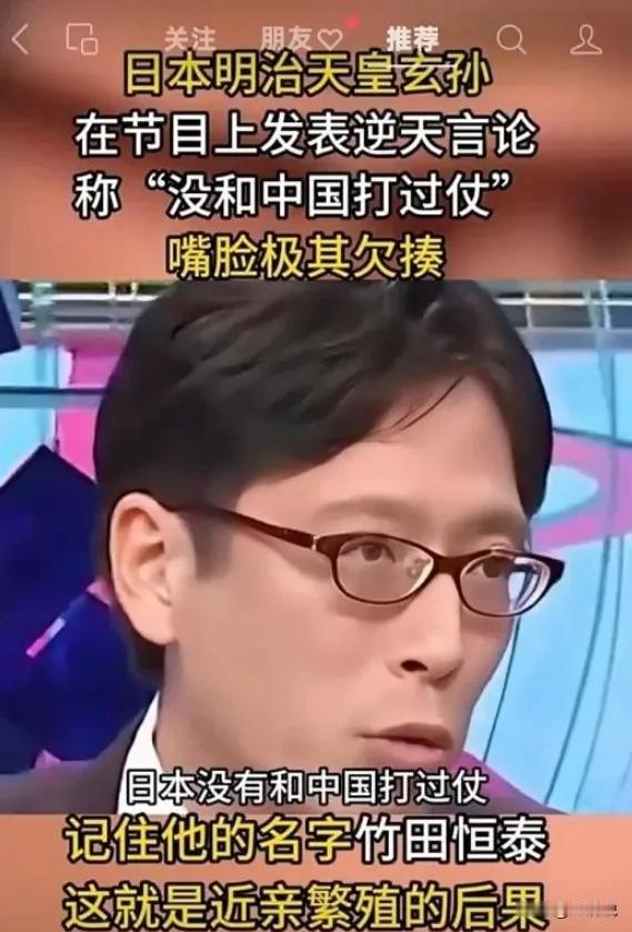 “中华人民共和国是世界上最野蛮、最好战的国家”?12月13日,日本明治天皇的玄孙竹田恒泰,发文狂言“中华人民共和国是世界上最野蛮、最好战的国家”,并批“东方大国军国主义复活,必须成为全人类的公敌”。这位狂人多年来坚持“皇国史观”,曾经声称东方大国的“民智未开”,监修颠覆史实的书籍。日本最高法院曾认定其言论存在种族歧视。 竹田恒泰,1975年在东京出生。 他的身份有点特殊,是日本以前皇室家族“竹田宫”的后代。他的曾祖父娶了明治天皇的一个女儿,所以他算是明治天皇的玄孙(第五代孙)。 不过,日本在二战战败后,法律改了,很多旧皇族成员都变成了普通老百姓,所以他现在在法律上就是个普通日本人,没有皇室特权。 他现在是个作家、评论家,在日本挺有名的,但出名的方式是经常发表一些非常右翼、非常极端的言论。他搞了个叫“竹田研究会”的组织,据说有好几万会员,主要就是传播他那套保守、右翼的思想。他经常上电视、写文章、在网上发视频,说话很冲。 竹田恒泰最核心的思想,就是极力维护日本天皇制度,并且坚持一种叫“皇国史观”的错误历史观。简单说,就是拼命美化甚至否认日本过去的侵略历史。 1. 死不承认侵略:他多次公开说,日本当年打中国不是“侵略战争”,只是和“当时的中国政府”发生了“冲突”,想彻底抹掉战争的侵略性质和给中国人民带来的巨大伤害。他还质疑“南京大屠杀”是不是真的死了那么多人,也否认“慰安妇”制度是强迫的。 2. 张嘴就侮辱人:他发表过很多针对中国和韩国的、带有明显歧视和侮辱的话。最出名的一句是,他曾经说“中国人‘民智未开’”,意思是中国人思想没开化、很愚昧。他还把韩国称为“像害虫一样的国家”。因为这些过分的言论,他在日本国内也惹了不少官司。 3. 出书歪曲历史:他不光自己说,还监修(相当于主编)一些历史书籍。这些书的内容经常颠倒黑白,把日本侵略的历史描绘成“正义”的或者“不得已”的,严重歪曲事实。 因为乱说话,在日本也吃过官司,竹田恒泰的嘴没把门的,不光在国外惹事,在日本国内也被告上过法庭。 2016年,他在一档电视节目里说:“在日韩国人、朝鲜人特别犯罪率高。” 这种以种族出身来断定犯罪倾向的言论,被一个在日韩国人团体告上了法庭,指控他“种族歧视”。这个官司一路打到了日本最高法院。 2021年7月,日本最高法院做出了最终判决。法院认定,竹田恒泰的这番言论确实构成了种族歧视,损害了在日韩国人、朝鲜人的人格尊严。 不过,法院基于日本宪法对“言论自由”的宽泛解释,最终没有判定他需要赔偿,但这份判决在事实上确认了他的言论具有歧视性质。这个判决在日本社会也引发了关于“仇恨言论”界限的大讨论。 对于竹田恒泰这个人,日本社会看法非常两极化。 有一批支持者:主要是些和他持有相同右翼、保守立场的人,觉得他“敢说真话”、“维护日本传统”,把他捧成意见领袖。 但也有很多批评者:包括不少日本学者、媒体人和普通民众,认为他的言论极端、不负责任,是在煽动民族对立、破坏日本与邻国的关系,也给日本在国际上的形象抹黑。主流媒体在报道他时,通常也会指出其言论的争议性。 这次事件不是偶然,是他一贯作风的延续,这次在南京大屠杀公祭日发表反华狂言,完全符合竹田恒泰一贯的作风和目的: 1. 挑衅时机:专门选在中日关系敏感的历史纪念日,意图再明显不过,就是为了最大程度地刺激中国,吸引眼球。 2. 倒打一耙:他把中国反对日本军国主义复活的正当立场,反过来污蔑成中国是“军国主义”,这是典型的混淆是非、倒打一耙。 3. 服务其政治目的:通过发表这种极端言论,巩固他在日本右翼圈子里的“旗手”地位,继续推销他那套“皇国史观”和反华主张。 总的来说,竹田恒泰就是一个利用其特殊家族背景,长期散布右翼极端思想、歪曲历史、煽动对立的日本争议人物。 他2025年12月13日的言论,是其一系列错误言行的最新一次爆发,选择在敏感时间点,性质尤为恶劣。
