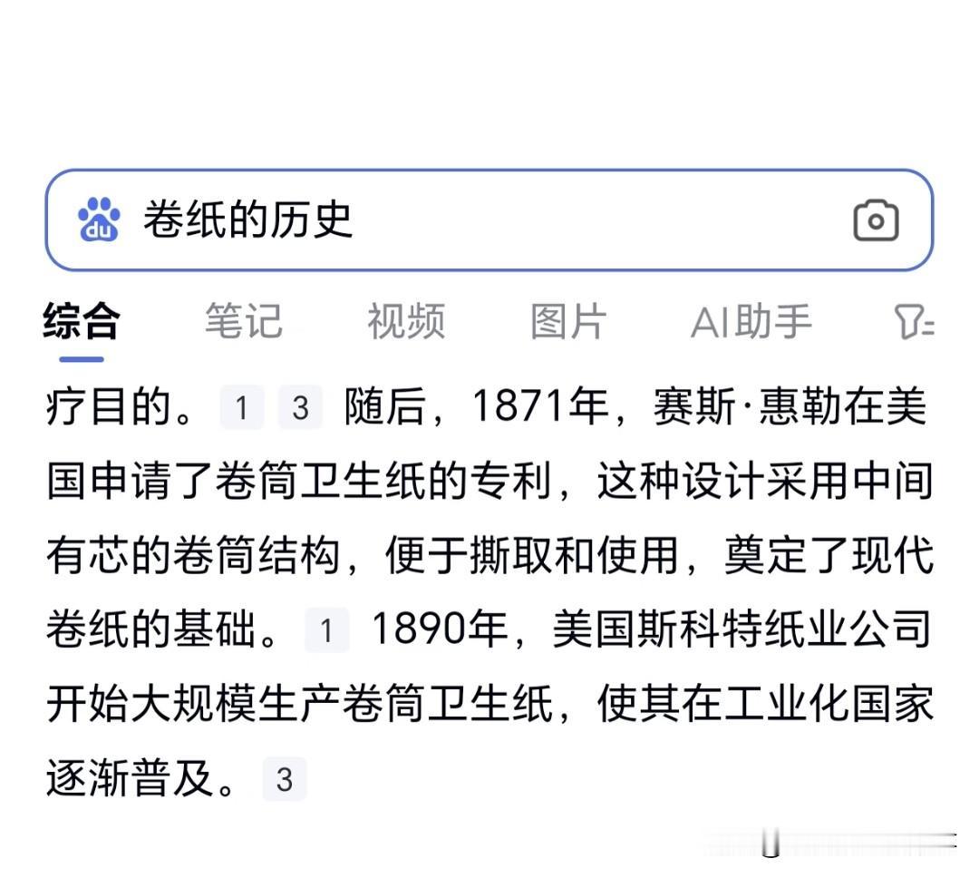 有观众问:1942年的《风与潮》里就有卷纸,这合理吗? 答案必须是:太合理了! 1871年,赛斯·惠勒就在美国申请了卷筒卫生纸的专利,中间带芯的设计,方便撕取和使用,直接奠定了现代卷纸的基础。到1890年,美国斯科特纸业公司已经开始大规模生产卷筒卫生纸,让它在工业化国家慢慢普及开来。 这么算下来,1942年出现卷纸完全是符合历史事实的!只能说《风与潮》的道具组真的走心了,连这种细节都抠得这么到位! 你们还在《风与潮》里发现过哪些超靠谱的历史细节?评论区唠唠!