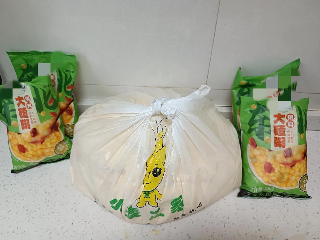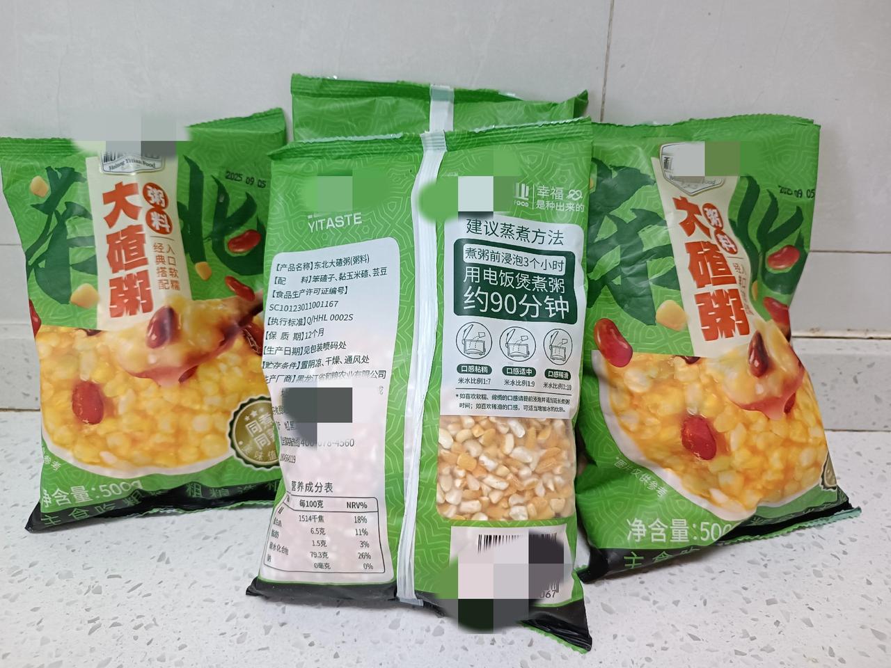 粗粮堪称健康食品,玉米面大饼子值得一尝,大碴子粥也值得一品。 我赶忙拿出从老家带来的玉米面,还有儿子买的大碴粥(图二),在此分享一番😃😃 这玉米面是公公婆婆在我家院里种的玉米磨制而成,纯天然且未施农药。这大碴粥我们已经煮过一袋,口感粘糯,味道极佳。其配料表和蒸煮方法如下(见图一)。 玉米面大饼子 黄黄的玉米面