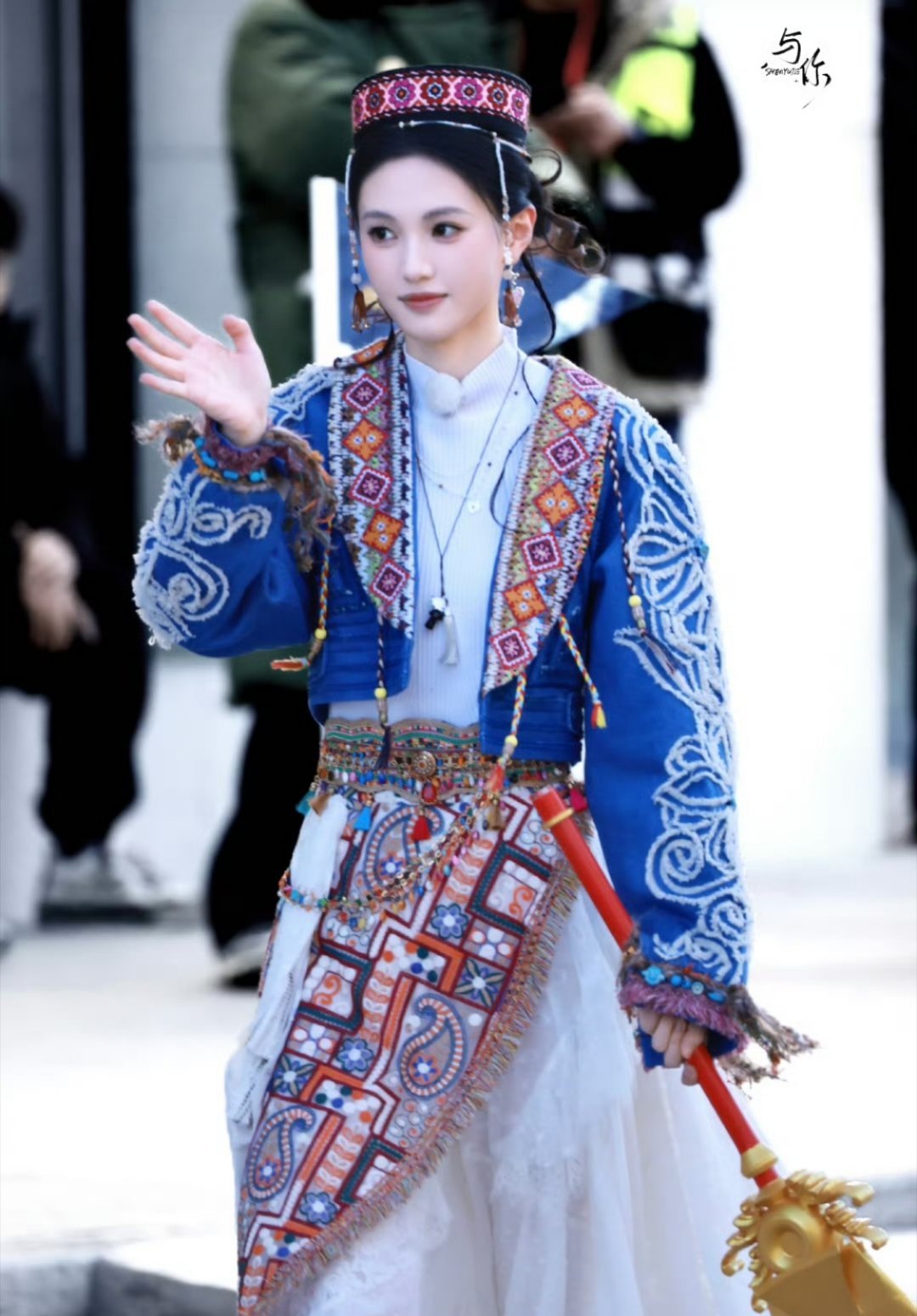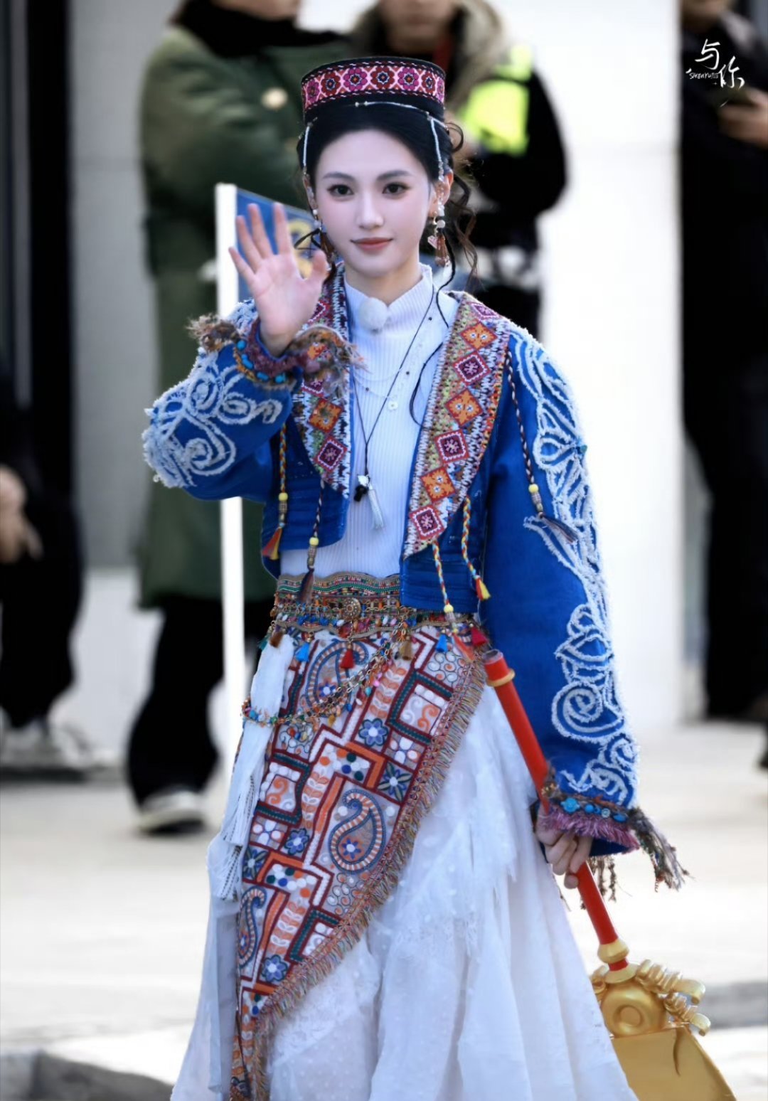 沈羽洁《奔跑吧兄弟》路透,好漂亮的一身民族服饰