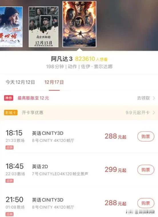 花300块看三小时电影?这事儿真值吗? 作为一个普通影迷,我原本对《阿凡达3》满怀期待——毕竟卡梅隆大神坐镇,特效大片谁不想看?可一查票价,我立马犹豫了:北上广一张票快100块,IMAX厅甚至飙到288元!一家三口看一场,小一千没了,这钱够我吃一周外卖了。更别说电影快三个半小时,憋尿不敢喝水,坐得腰酸背疼,想想就头疼。 前两部的口碑下滑也让我犯嘀咕:《阿凡达2》豆瓣才7.8分,这回烂番茄新鲜度69%,新低啊!万一花了钱还踩雷,岂不冤死?相比之下,国产片像《得闲谨制》主动降价,票价亲民,稳稳当当涨票房。好莱坞大片滤镜碎了,如今观众精着呢——高成本不是高票价的借口,诚意比噱头更重要。要我选?等正式上映后口碑炸了再说吧!