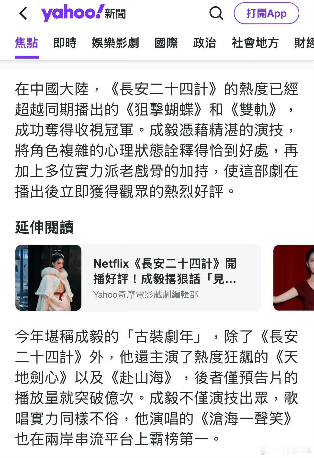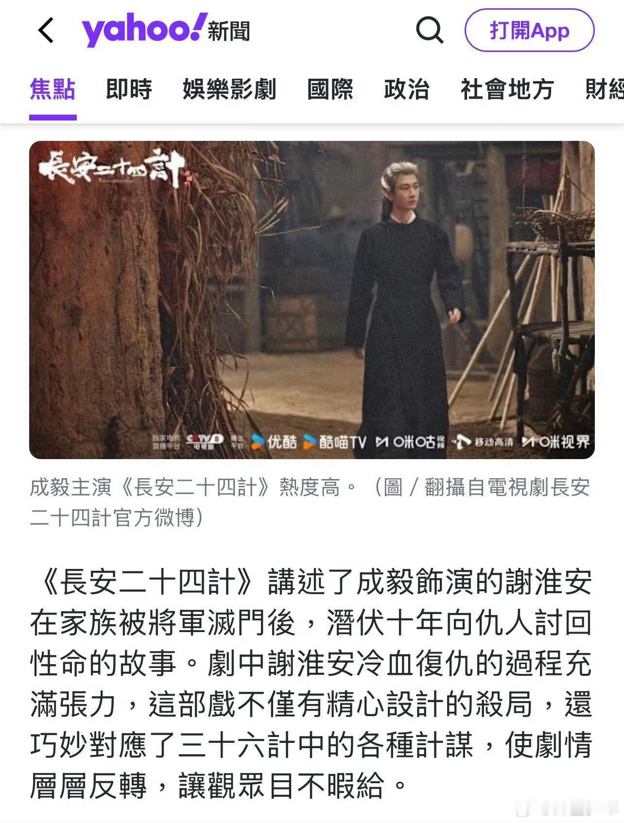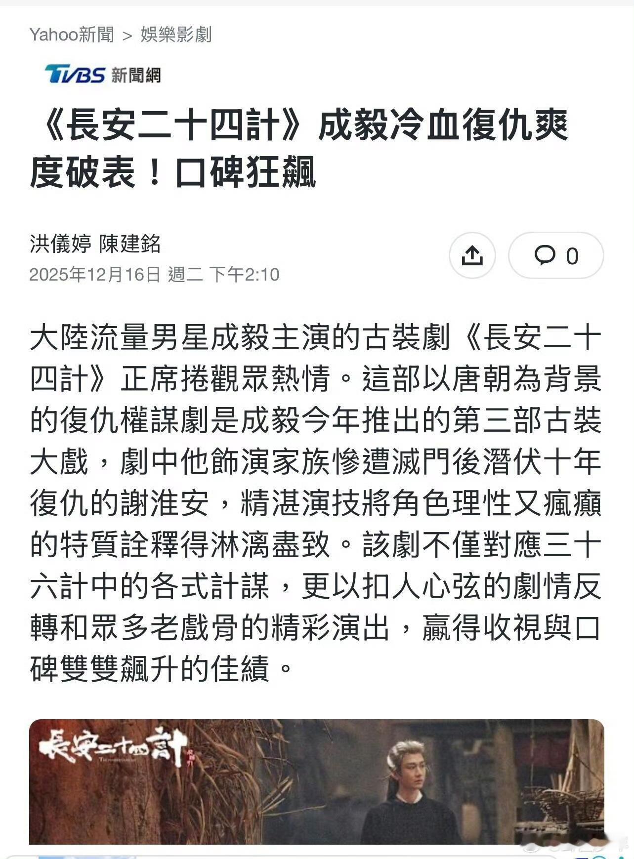 台媒报道成毅长安二十四计 好剧不分地域,成毅用实力让《长安二十四计》被更多人看见