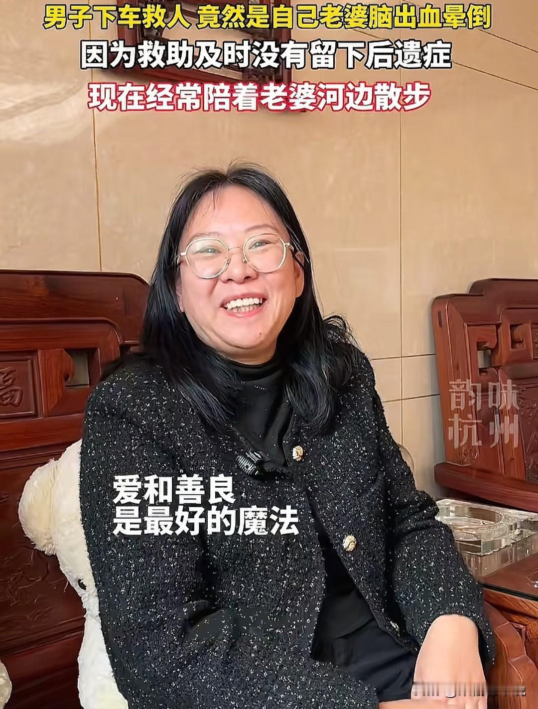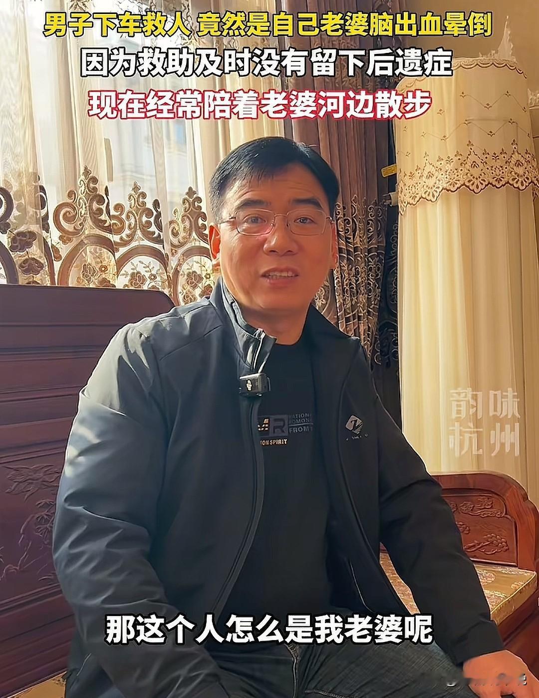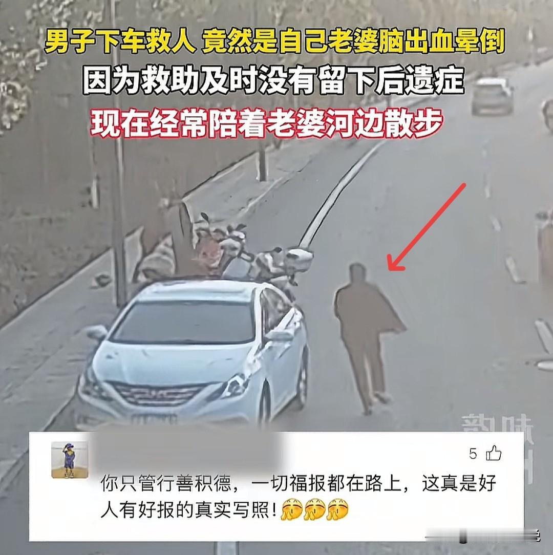 彻底解释不清了!杭州某地一女子骑着电瓶车正行驶在路上,忽然身体不适连人带车倒在了地上,恰好一男子开车路过,看到有人躺在地上没人管,于是他赶紧把车停下跑过去帮忙,凑近一看才发现躺在地上的女人竟然是自己的老婆! 男子赶紧把自己老婆送到医院,经过诊断发现是脑出血,都知道脑出血是非常危险的,送医稍微晚一点都要出大事,偏偏女人从倒地到送到医院总共就用了15分钟左右,这个速度连医院专家都感到惊讶!也正由于送医及时没有耽搁病情和治疗,女子很快就康复了! 要说这大哥就是好人有好报,如果当时他没有停车救人,可能就会非常自责了!女子也是非常有眼光,找了个这么善良的老公,这不仅仅是对她好,他是对所有人都好,不然他也不会选择下车救人了!所以你尽管行善积德,福报都在路上,这就是最好的写照!