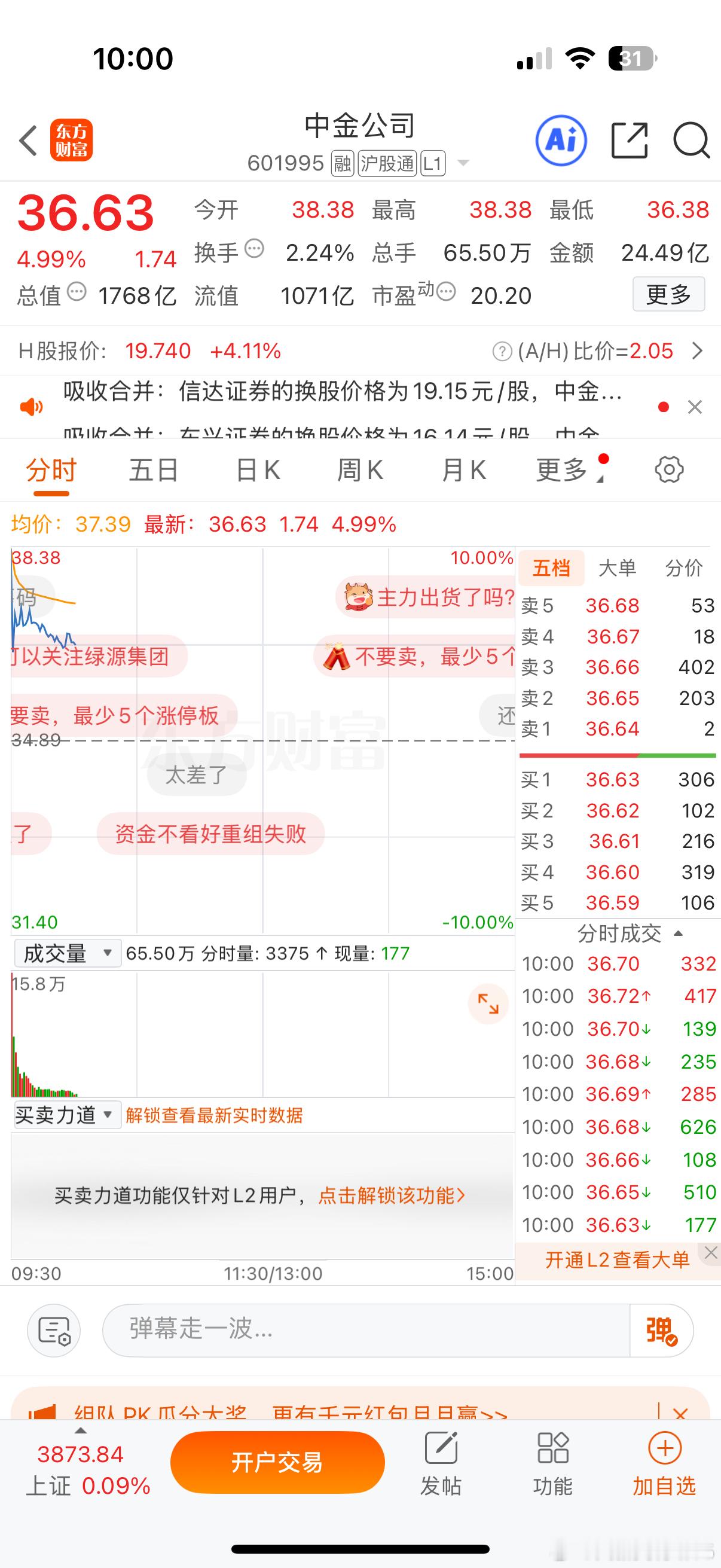 $中金公司 sh601995$ 昨天闹的沸沸扬扬,今天就是直接爆头表演,重组证券就没一个有格局的
