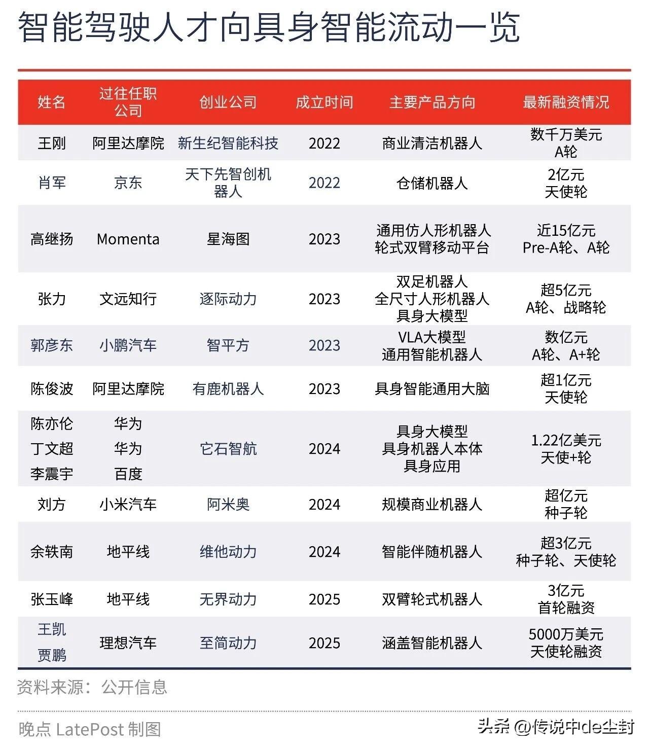 现在的机器人像极了10年前的电动车。 无数有豪华履历的顶尖人才和风险资金涌入其中,想抢得先机…… 但具身智能会比电动车更难做。 甚至难做很多,因为在没有做出一个足够成熟、完善的具身之前,这个东西只能是一个展示品,几乎无法大规模售卖,也就是说,无法带来正向现金流,而研发要一直持续、且高强度,5年、10年…… 另外还有一个老生常谈的问题,那就是“同质化”,这个问题贯穿各行业,家电、手机、电车,机器人相信也不会有例外。 (图片来自晚点)