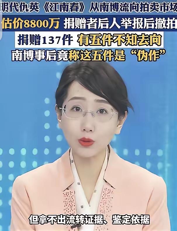 南京博物馆这次尴尬了。 估价8800万元的捐赠古画准备拍卖,被捐赠人发现了,一查才知道,自家捐赠给南京博物馆其它的4件文物也都不见了。 这事一曝光,直接在网上炸开了锅。网友们都懵了,博物馆啊,那可是文物的保险箱,是咱们普通人眼里最靠谱的地方。谁家把祖传宝贝捐出去,图的就是个安心,想着能被好好保管,还能让更多人看到。倒好,这倒好,价值几千万的古画直接被摆上了拍卖台,另外四件文物更是连影子都找不着。 捐赠人估计肠子都悔青了。当初肯定是抱着对博物馆的信任,心甘情愿把压箱底的宝贝交出去。谁能想到,自己的一片心意,最后竟然变成了别人牟利的工具。想想就来气,这可不是随便丢个瓶瓶罐罐,那都是有历史价值的文物,是老祖宗留下来的东西,哪能这么糟践。 有人说,这中间肯定有猫腻。文物从博物馆库房到拍卖场,这中间要经过多少道手续,多少双眼睛盯着。要说没人从中捣鬼,打死都不信。还有人吐槽,博物馆的管理也太儿戏了,连捐赠的文物都能弄丢、能拿去拍卖,那库房里其他的文物,是不是也存在安全隐患。 也有不少人替那些文物揪心。那幅估价8800万的古画,要是真被拍卖出去,说不定就流落到私人手里,从此藏起来不见天日。另外四件失踪的文物,更是生死未卜,万一被损坏、被倒卖,那损失可不是用钱能衡量的。 这事也给所有博物馆提了个醒,文物保管不是儿戏,公众的信任更是经不起折腾。拿着国家的资源,守着老祖宗的遗产,就得担起那份沉甸甸的责任。不然的话,失去的可不仅仅是几件文物,还有老百姓心里那份实打实的信任。 各位读者你们怎么看?欢迎在评论区讨论。