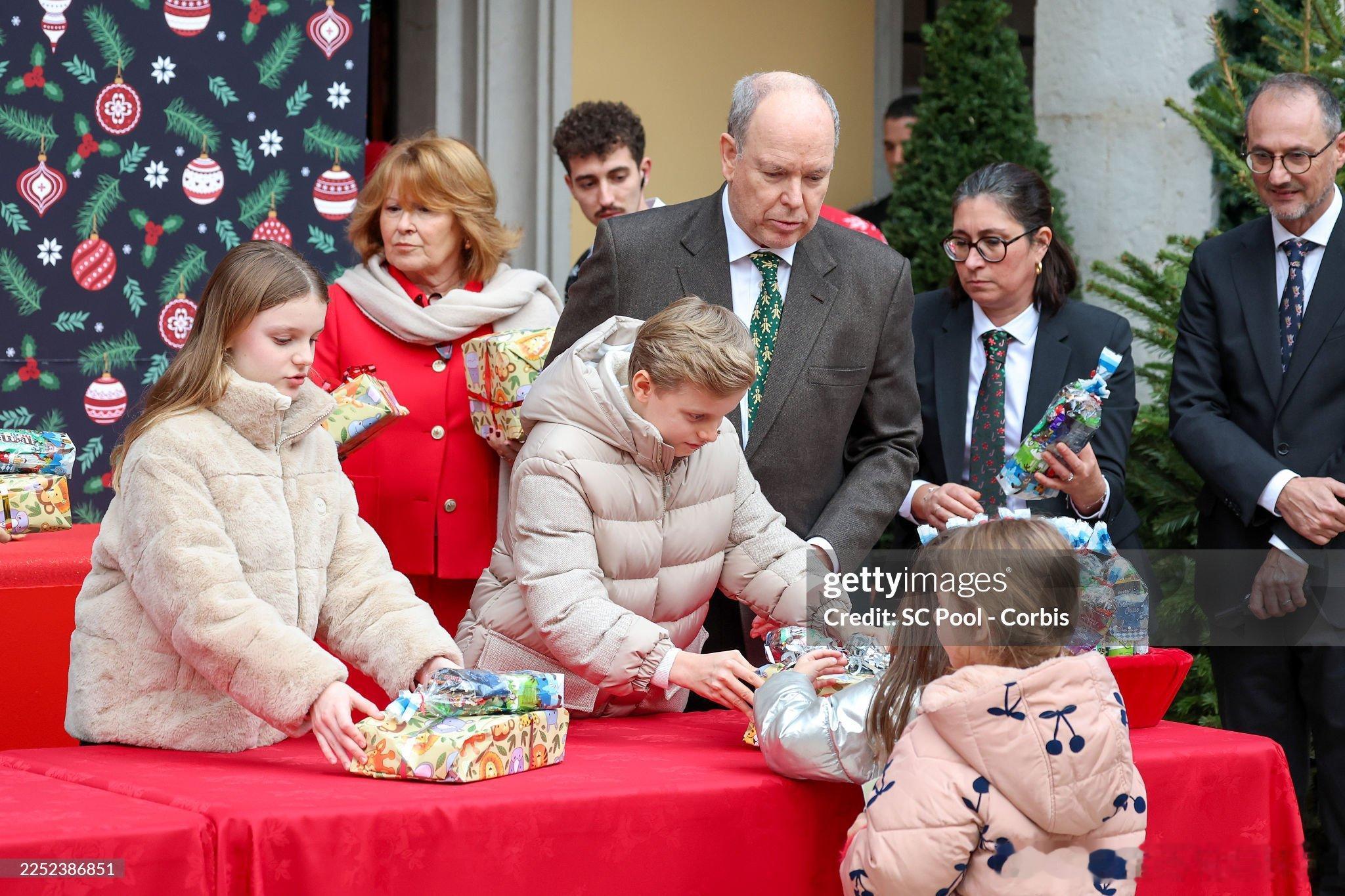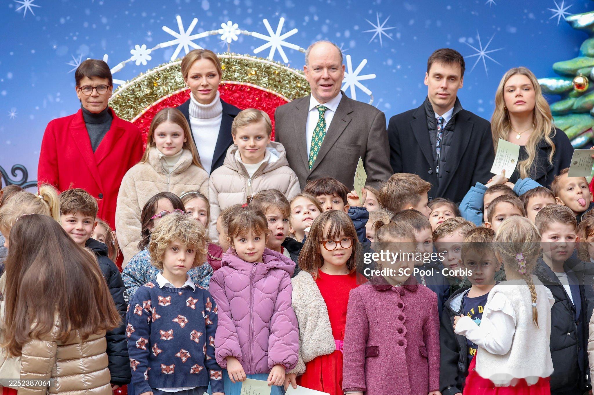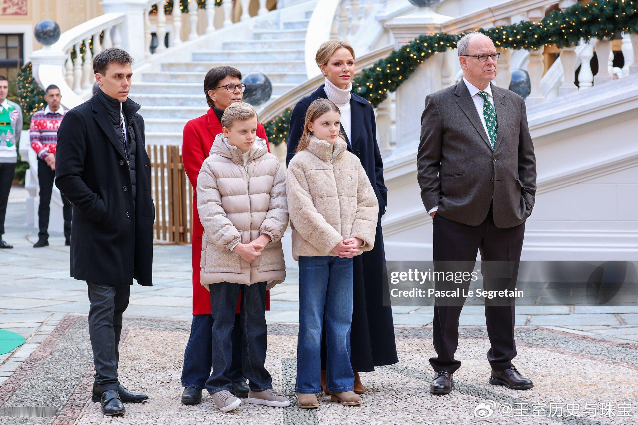 新闻 2025.12.17 摩纳哥亲王一家、斯蒂芬妮公主及儿子路易斯和小女儿卡米出席在摩纳哥皇宫举办的圣诞礼物派发活动。