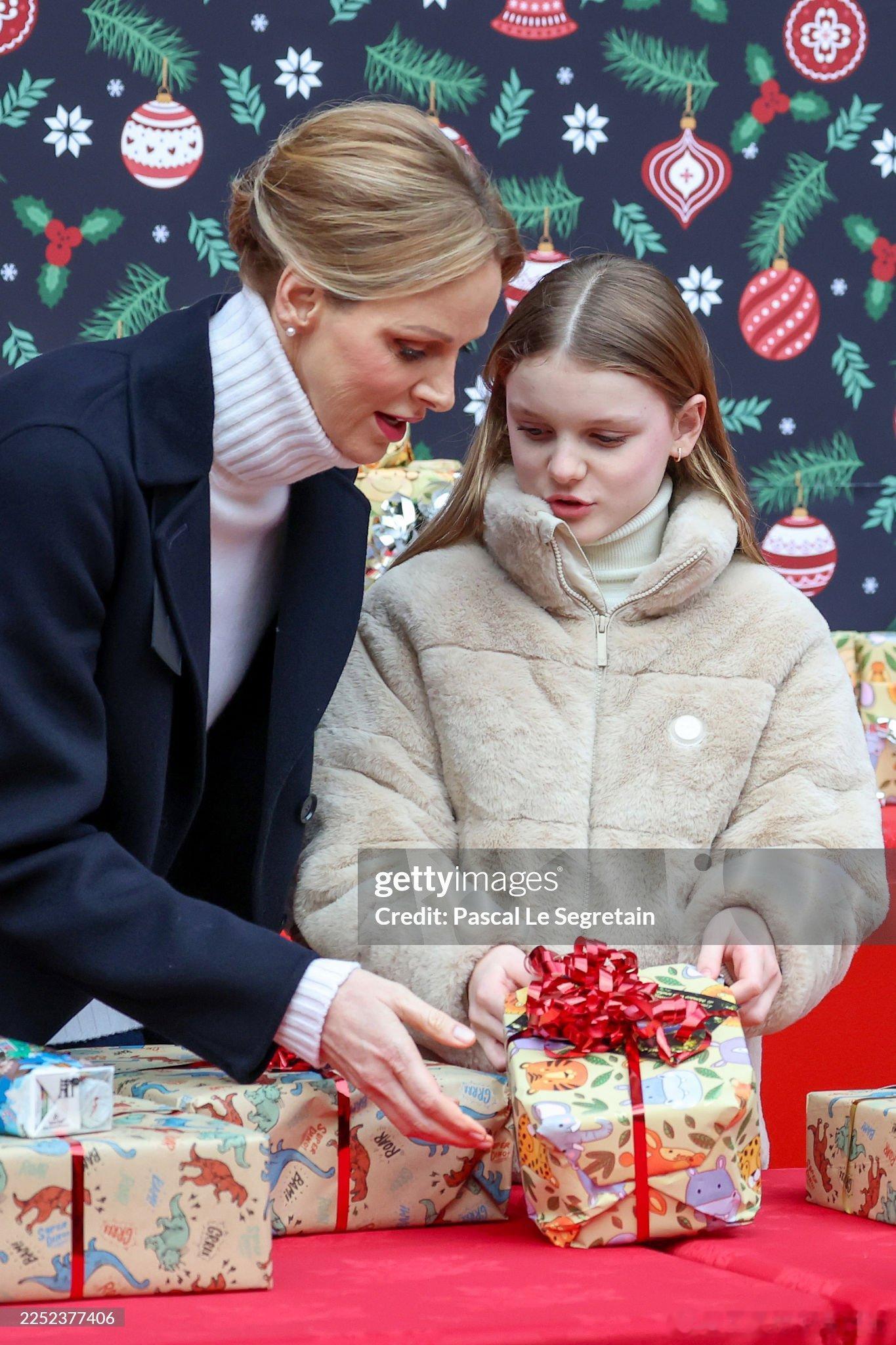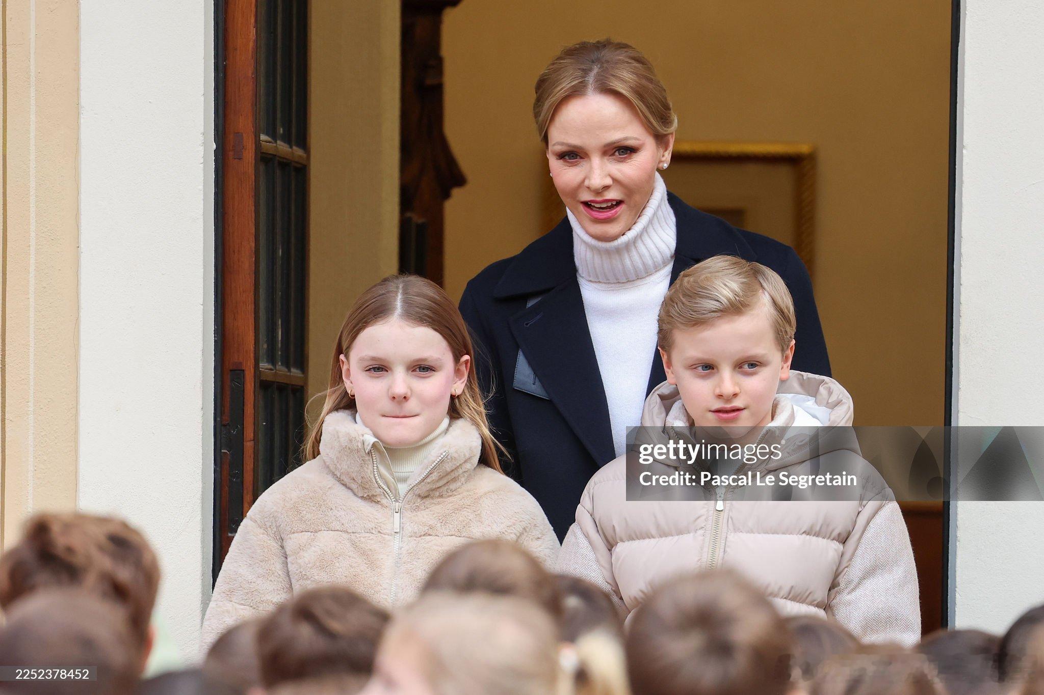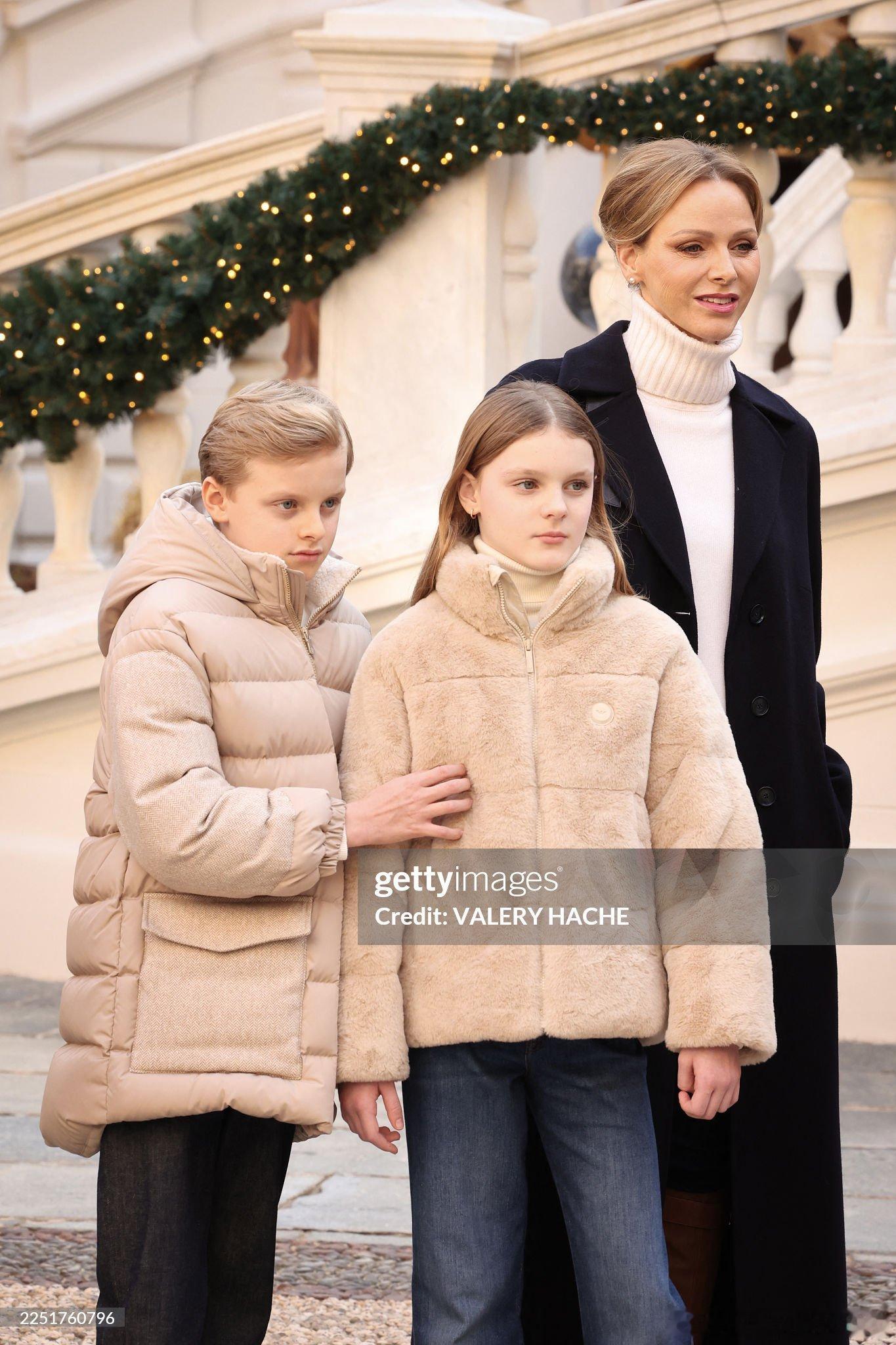 新闻 2025.12.17 摩纳哥亲王一家、斯蒂芬妮公主及儿子路易斯和小女儿卡米出席在摩纳哥皇宫举办的圣诞礼物派发活动。