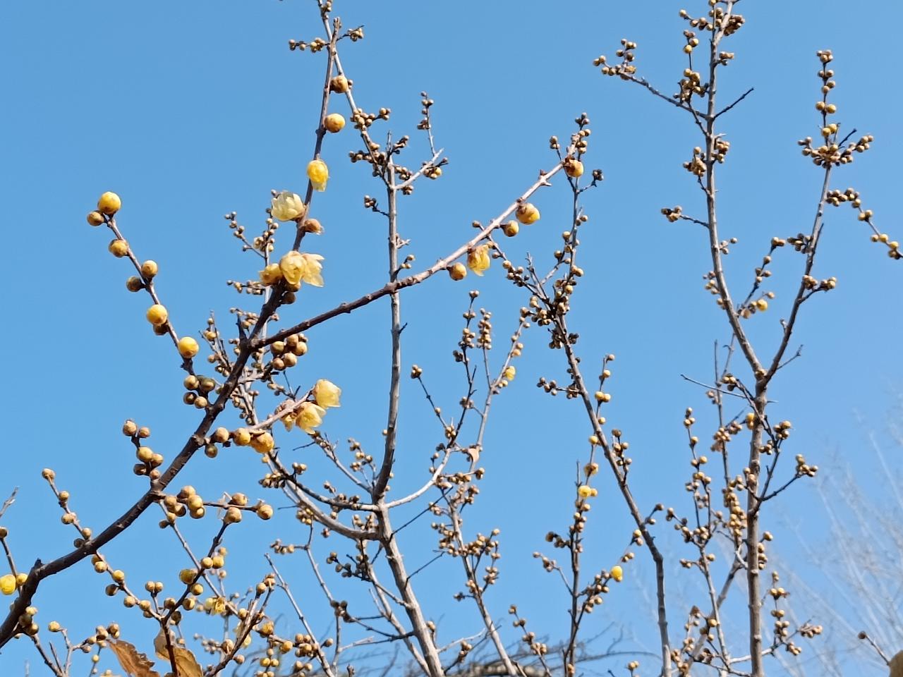 冬天已至,春天还会远吗?春天正悄然在孕育的途中。 昨日,艳阳高照,没有一丝风。我与李姐外出闲逛,本打算去赏腊梅,却意外发现迎春花开了,那几朵小黄花格外惹眼。还瞧见了一株玉兰花,那宛如小毛笔般的花骨朵,正默默孕育着……