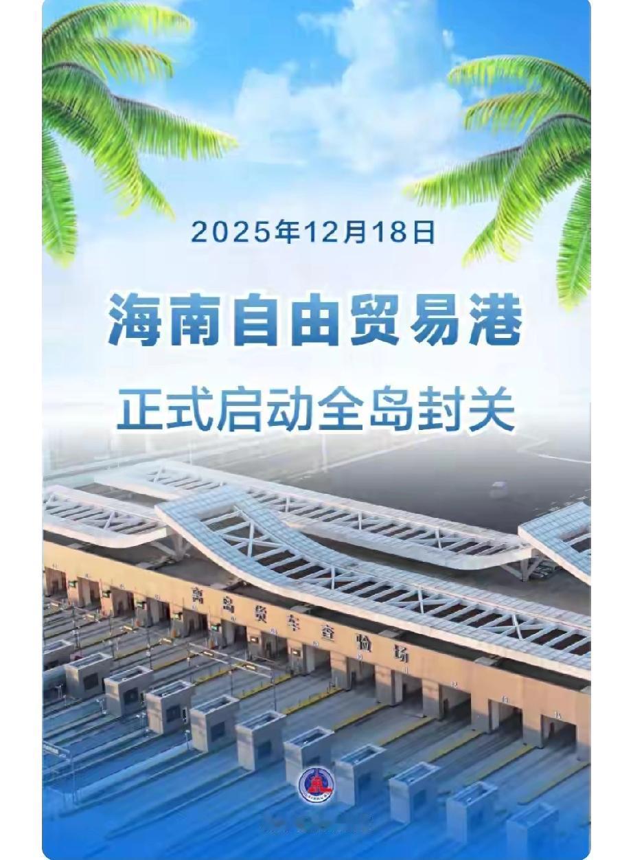 12月18日,海南自由贸易港全岛封关正式启动,这可是具有里程碑意义的大事。从2018年提出打造,到2020年《海南自由贸易港建设总体方案》发布,如今封关达成2025年阶段性目标。 封关可不是封岛,是把海南建成海关监管特殊区域,实行“一线”放开、“二线”管住、岛内自由的政策。政策红利超诱人,“零关税”商品税目比例从21%提升到74%,增至约6600个税目,企业进口设备预计省20%税收成本。加工增值免关税政策也升级。封关是新开始,未来海南开放领域会扩大,政策会更完善,值得期待!