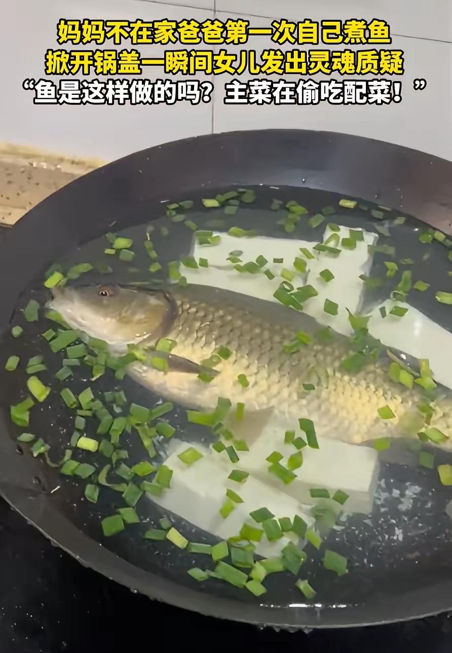 这届爹带娃,主打一个“活着就好”!浙江这位硬核老爸,第一次下厨做鱼,竟直接把活鱼扔进锅跟豆腐同煮,鱼鳞没刮、内脏没去,还跟闺女上演神对话—— 女儿盯着扭动的鱼嘴惊呼:“爸爸,鱼在偷吃葱!” 老爸咬牙切齿:“敢吃我葱?烧死你!” 网友笑疯:这哪是做饭?分明是“法海煮白素贞”! 但笑着笑着突然悟了——多少妈妈崩溃的厨房,正是孩子眼里的童话世界。这位老爸虽然厨艺炸裂,却意外完成了高质量陪伴:笨拙但认真,翻车却欢乐。原来最好的教育,不是完美无缺,而是和孩子一起笑着面对“翻车现场”。 下次妈妈回家怕是要拎着锅质问:“你们爷俩是把鱼超度了吗?”