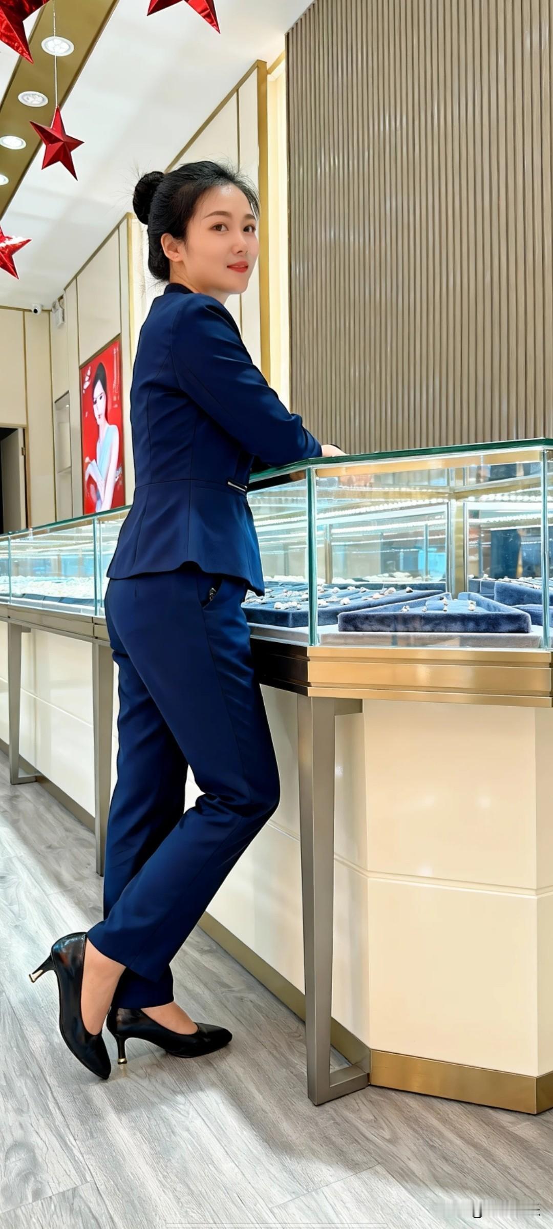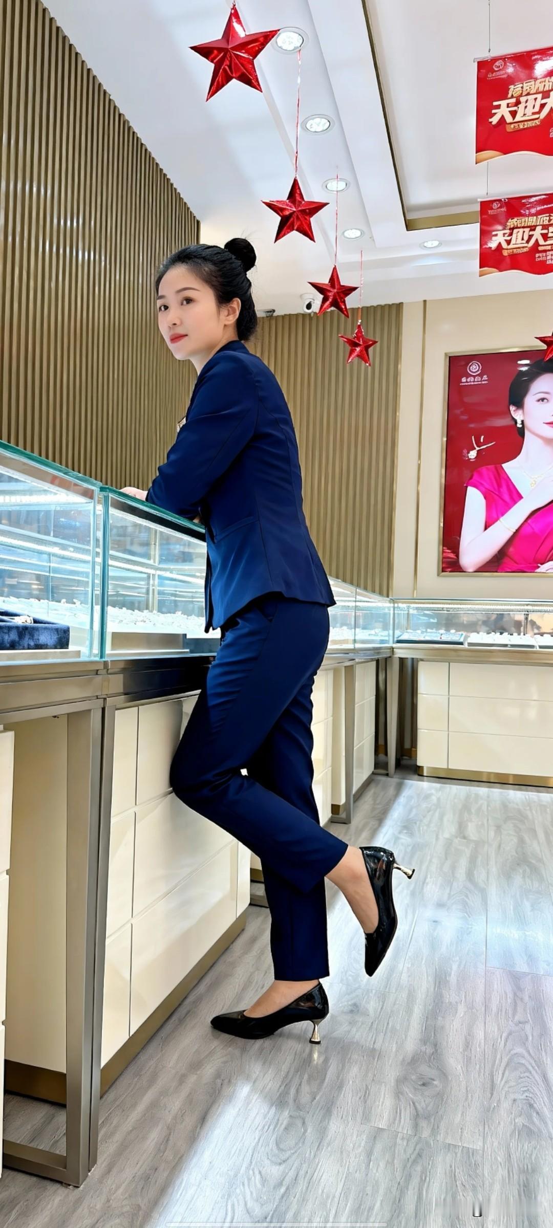 优雅职场风,蓝色西装搭配黑色高跟鞋,尽显女性魅力!