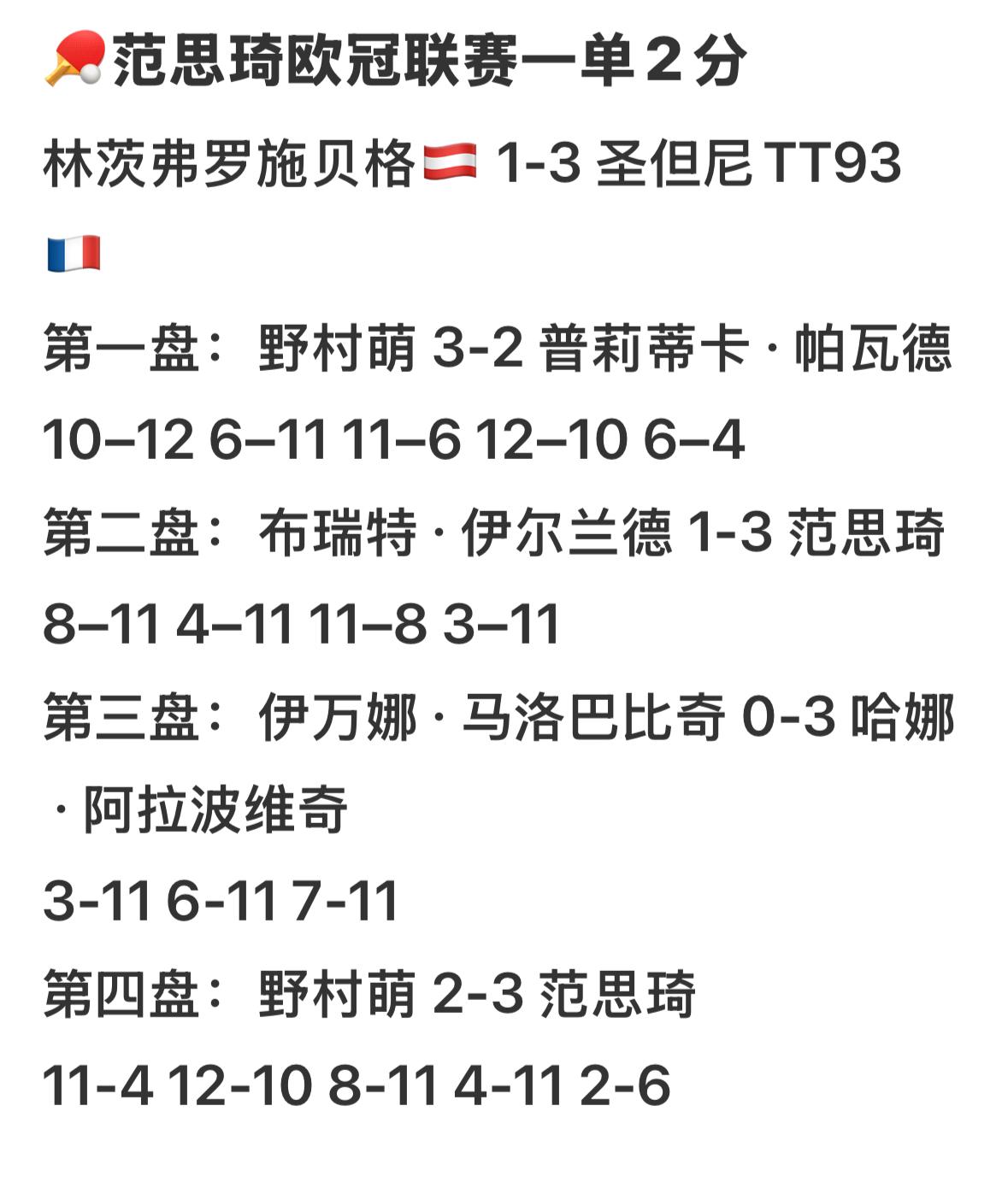 范思琦首次打欧冠联赛一单二分——实力毋庸置疑 范思琦,印象中第一次打欧冠, 之前一直在打印度,埃及的联赛, 同时今年也在打T联赛, 还是去外面打球好, 欧洲比较好, T联赛也行,高手多, 氛围好, 心情好,压力小! 范思琦这一次和帕瓦德一个俱乐部, 状态爆棚, 挺好的,出去打球最起码有 稳定的收入, 有生活保障, 是金子在哪里都发光, 范思琦目前在法国俱乐部 效力很好👍……