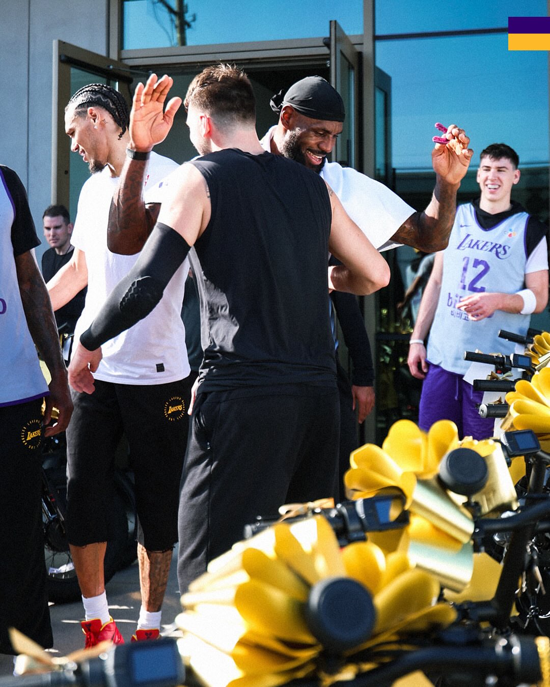 湖人ins报道,卢卡·东契奇为湖人球员和工作人员带来了100多辆电动自行车的惊喜礼物🎅🏼