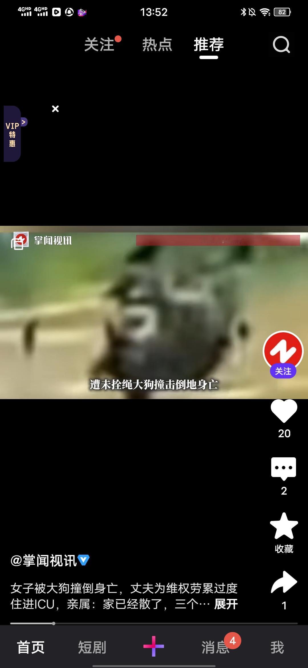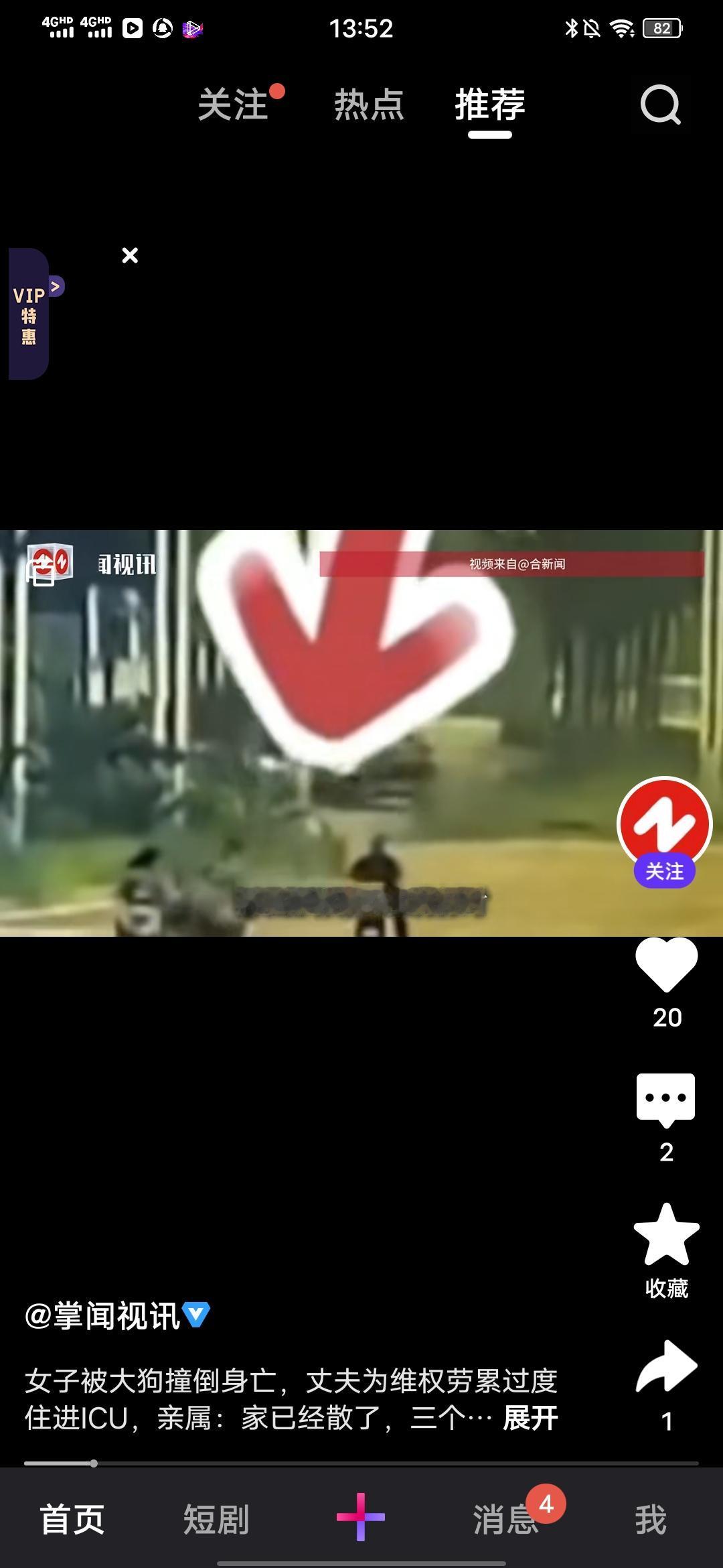 女子被大狗撞倒身亡,丈夫为维权劳累过度住进ICU,亲属:家已经散了,三个孩子没人管! 这个是刚刚在掌闻视讯看到的大河报的报道,河北邯郸张女士,骑着电瓶车在路上行驶时,遭遇未栓绳的大狗撞击倒地,人就这样离开了,而他的丈夫冯先生为了给妻子维权,奔波劳碌期间因为劳累过度,我认为是身心俱疲,冯先生突发脑干出血昏迷,住进了ICU,下面他们还有三个孩子,张女士的哥哥说,家里顶梁柱倒了,家也散了。而冯先生的父亲则很担忧儿子,因为没钱而失去生的动力,那么三个孩子就真成孤儿了。 最近几年总不时看到恶狗,大狗伤人的事件,就不明白为什么养狗的人就不好好看管,或许有人说,狗是最有灵性的动物,是,动物都多少有灵性,但是狗毕竟是狗。分不清好坏,懂不起法律法规,它们只有畜生的智力和本性,他们的灵性也紧紧体现在自己朝夕相处的主人身上,对于陌生人它们都是警觉和带有攻击性的,所以,养狗没问题,但要管理好,不要给别人带来困扰和伤害。 其实,看到这个骑电瓶车被撞击倒地的恶性事件,跟我昨天傍晚放学接小朋友回家路上发生的事非常相似,当时我接了小宝正在一个路口等红绿灯,那个路口是很宽大的,而我在路口路障栏边边上等着,期间我看了一下手机信息,然后绿灯亮了,我便没有能够在绿灯亮的同一秒冲出去,结果后面来的就按了一声喇叭,我也没有能够在它按了喇叭后第一秒冲出去,结果万万没有想到,那个东西直接给我撞上来了,我没稳住就和孩子连车一起倒在了地上。我起身转过头去,却看到一张幸灾乐祸的笑脸,真的把人气坏了,旁边没有路吗?旁边还有很宽的路,相当于一个机动车道那么宽了,还过不了它一个电瓶车吗?非得从我停的地方过?后来对方笑着说了句不好意思就跑了,留下我和小宝在原地吹冬日寒风。当然我当时非常气愤地问候了他祖宗十八代。 这不也是像那没有栓绳的恶狗吗?太可恶了!友友们觉得呢?
