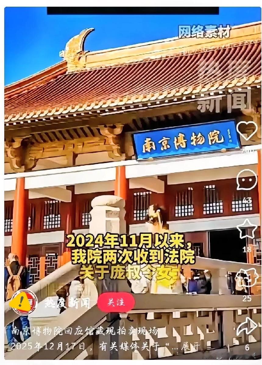 庞家人这一记“回马枪”,直接给南京博物院整不会了! 不得不佩服,1957年的老账本,人家硬是连个角都没烂。 据悉,庞家1957年捐赠给南京博物院的137件文物,其中有5件文物不翼而飞, 庞家近日在网络上发布声明,称这5件文物一直在庞家人手中,他们从未说过这5件文物是赝品,质疑官方没有拿出任何证据证明这5件文物是赝品。 并表示,庞家人在上世纪80年代就已知道这5件文物不在博物院收藏之中,并且手中有当时博物院出具的捐赠清单,质疑官方此事处理过程的不透明。 “我们希望官方给出一个说法。” 对于庞家人的质疑,南京博物院方面称:“我们没有隐瞒任何事实,也欢迎社会各界监督。” 目前,庞家人和南京博物院之间的争议仍在持续,后续如何解决,值得关注。