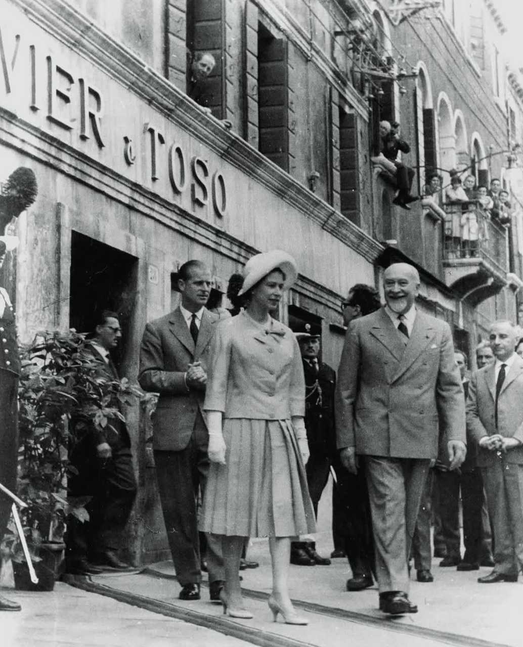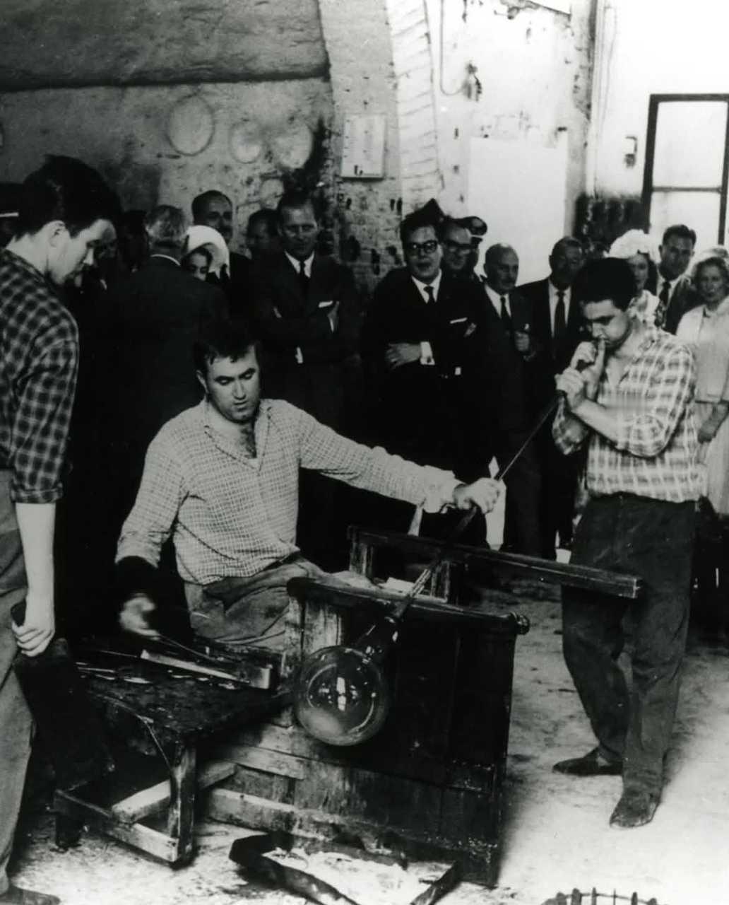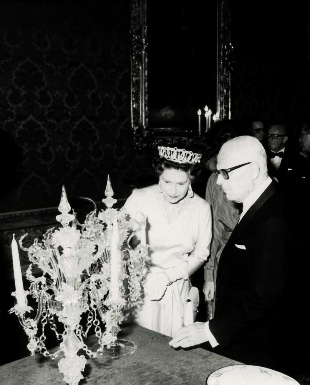 【来自投稿】1961年 英国女王伊丽莎白二世夫妻参观了意大利威尼斯 Barovier&Toso 玻璃制品公司,这家玻璃制品公司创办于1295年,以优美的玻璃灯具,餐具,花瓶…而闻名,四季酒店,宝格丽酒店 等奢华酒店均采用Barovier&Toso的产品