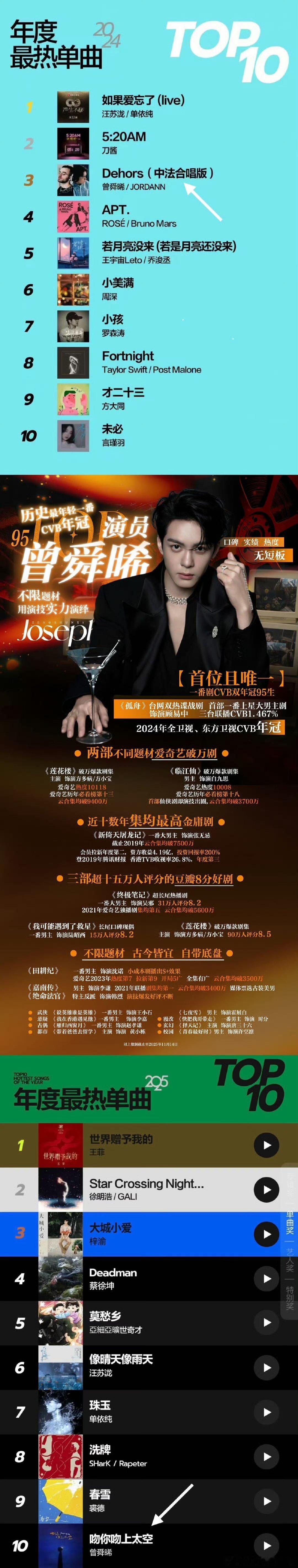 曾舜晞卷卷有其名 不得不说曾舜晞真的把卷字刻进DNA了,影视圈手握双破万剧和年冠,音乐圈连续两年出爆款,这双赛道都卷到顶尖谁能比!