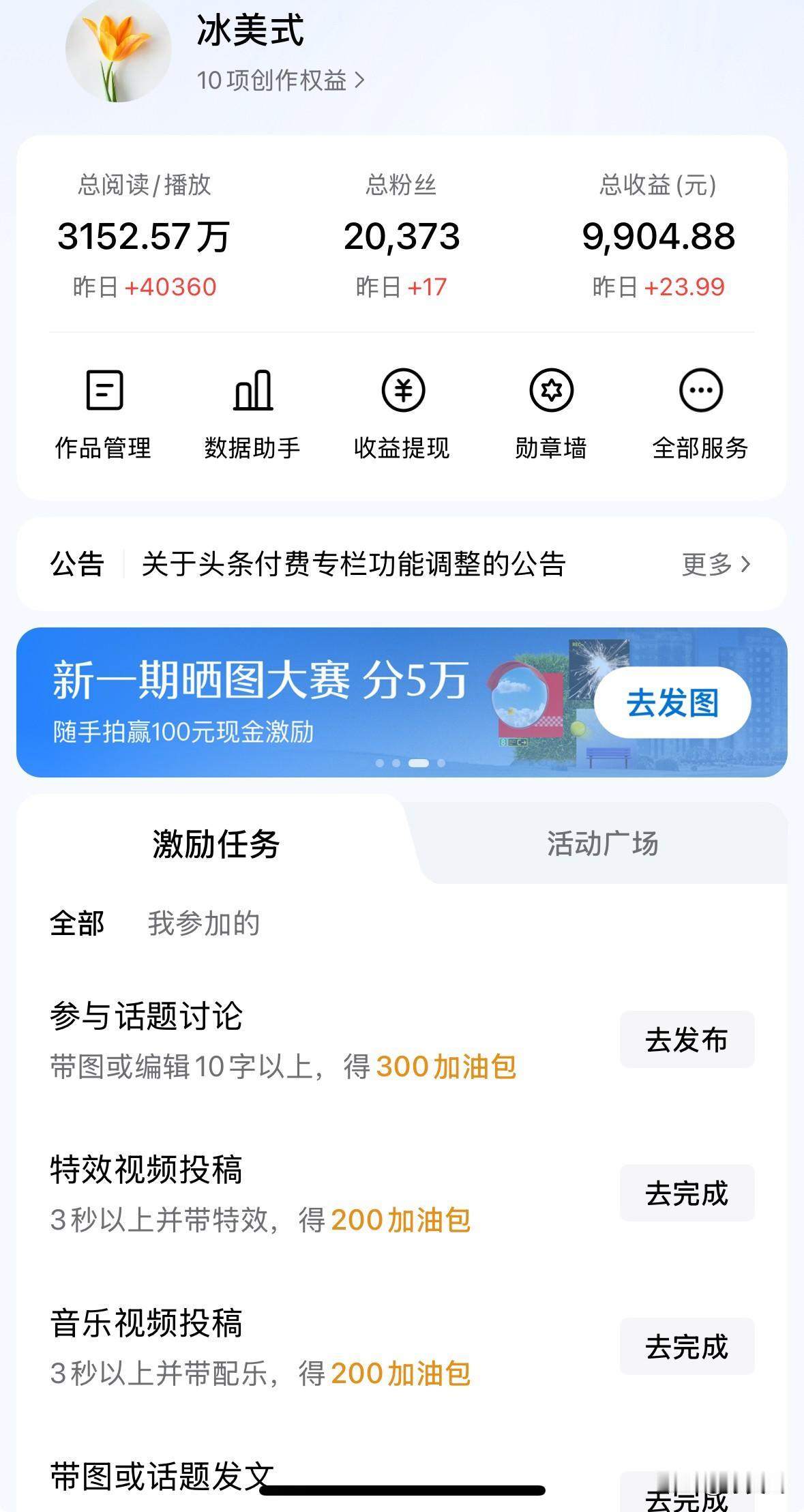 惨不忍睹! 图文的时代基本已经结束了 只有大咖@素老三级别的还能赚点钱 咱们普通老百姓 就别想着靠图文发大财了 连口热乎乎的汤都吃不上了 只能转型短视频了 不然斯路一条