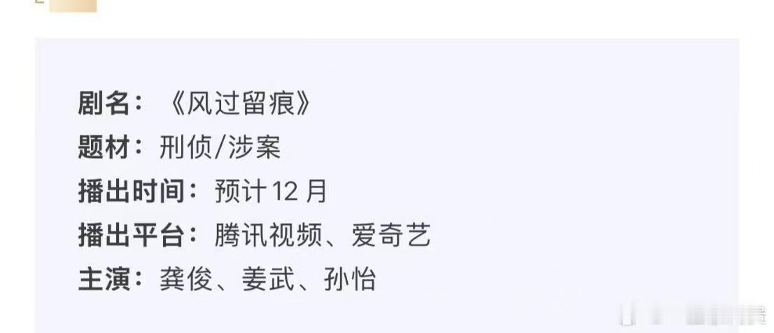 风过留痕播前招商龚俊风过留痕播前招商龚俊新剧《风过留痕》播前招商,期待早日定档