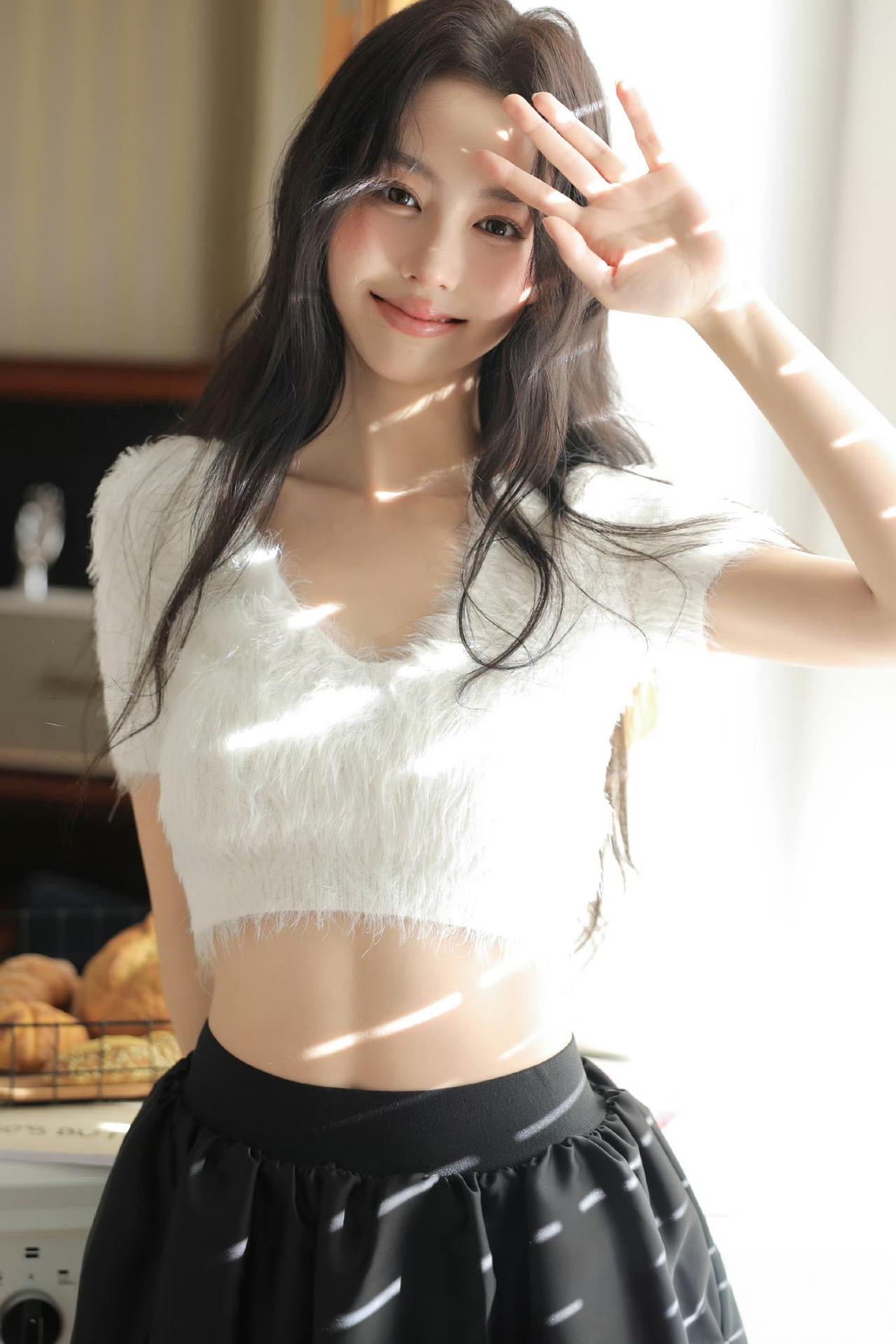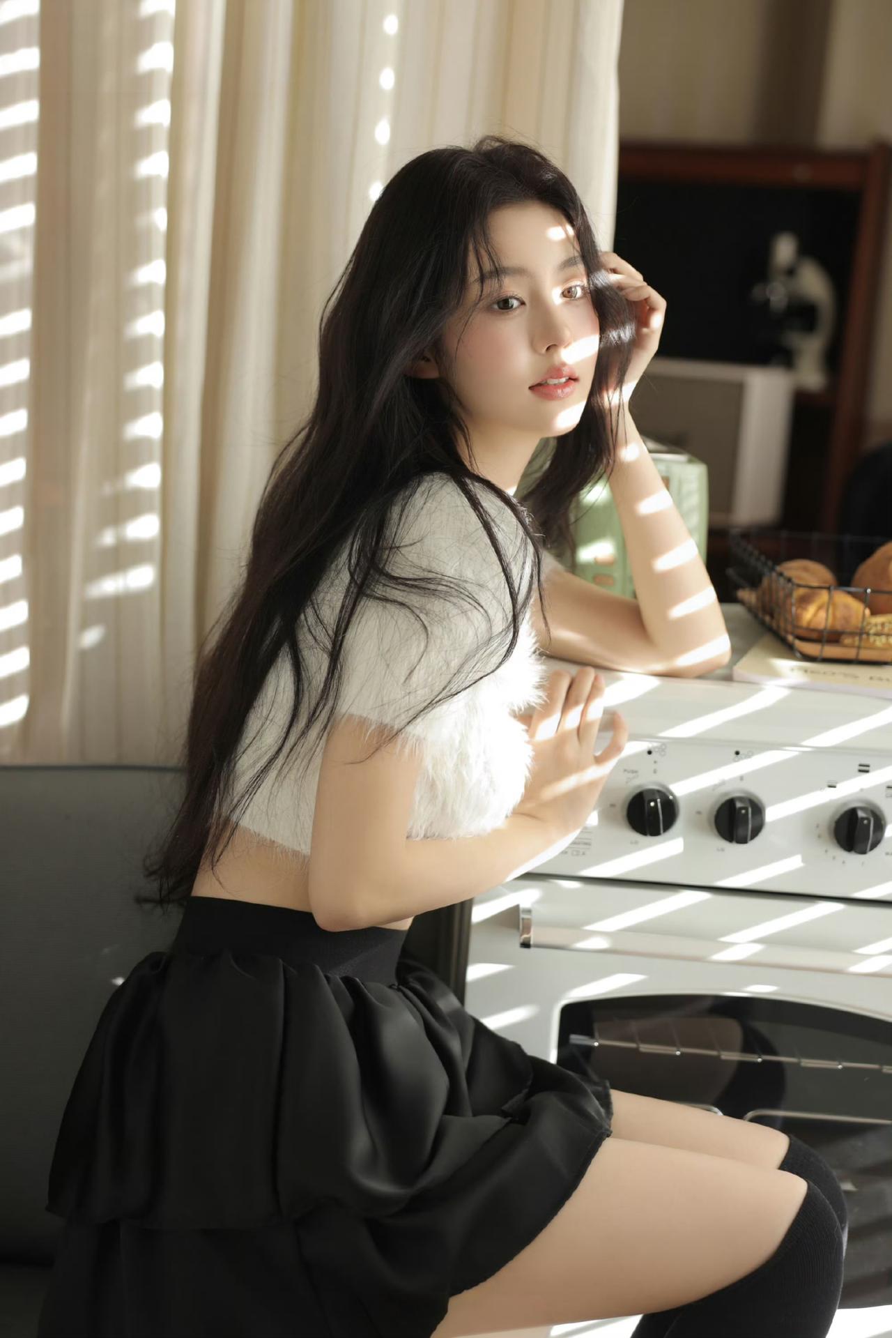《林麓晴光》晴林叠翠覆苍苔,石畔佳人倚树来。柔发垂腰凝浅黛,素衣裁玉衬香