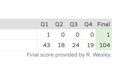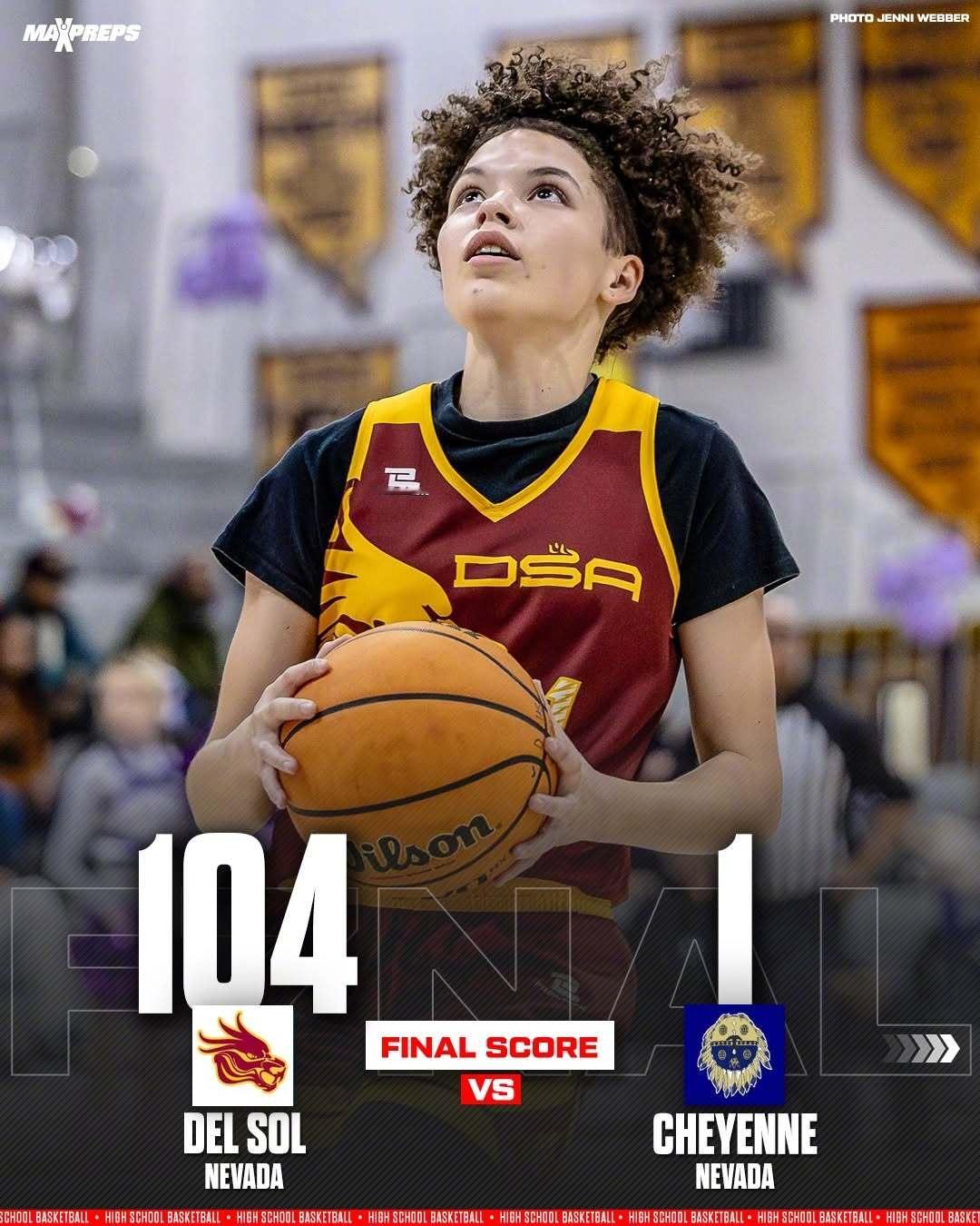 看完这个比分都沉默了,104-1,这是什么比赛可以打出来的分数?在一场拉斯维加斯的美高女子篮球赛中,Del Sol以104-1击败了Cheyenne!Cheyenne只在第一节拿到了1分,其他三节都挂零!