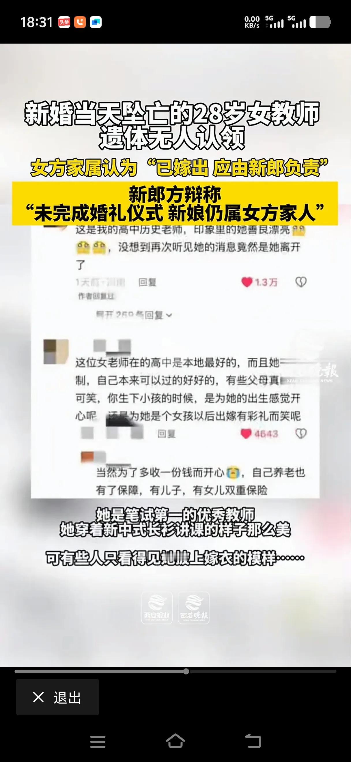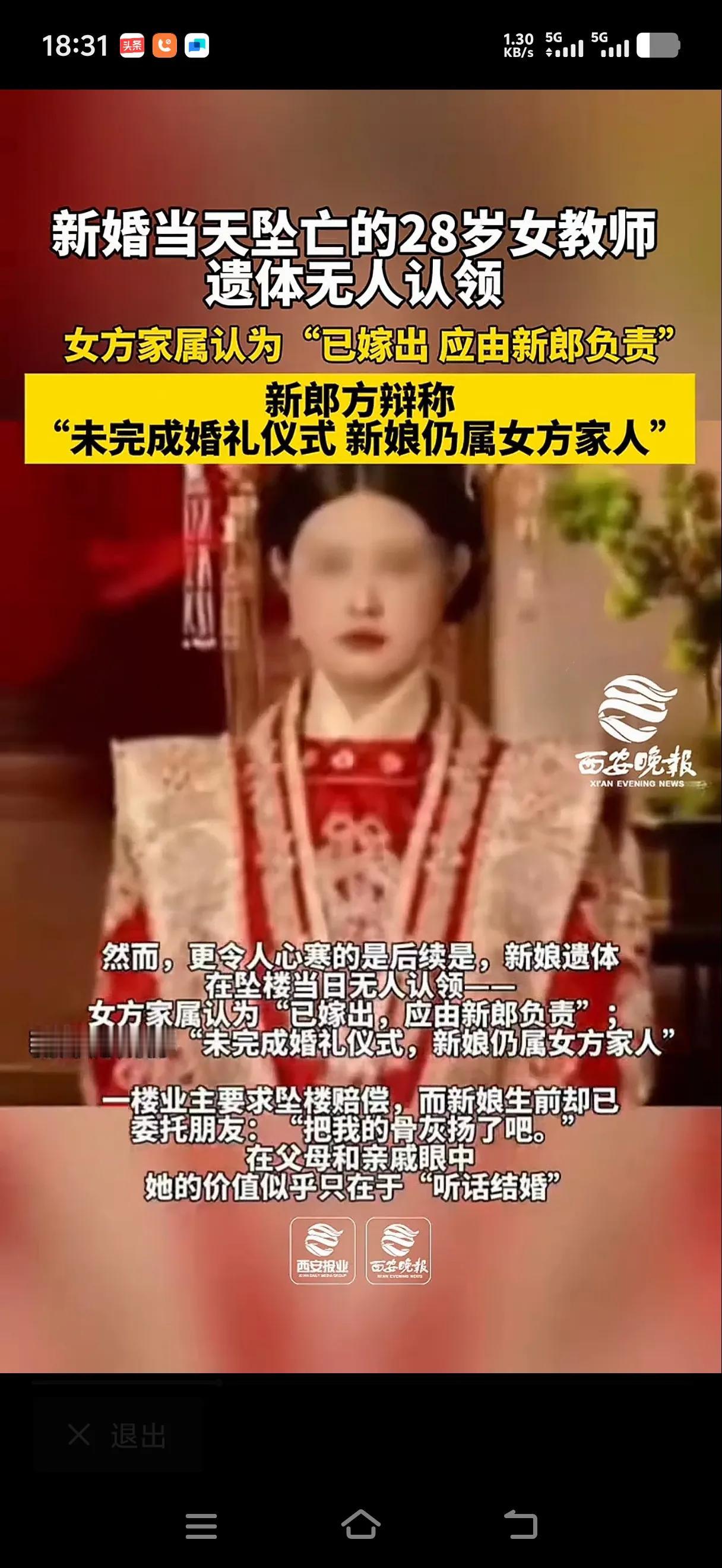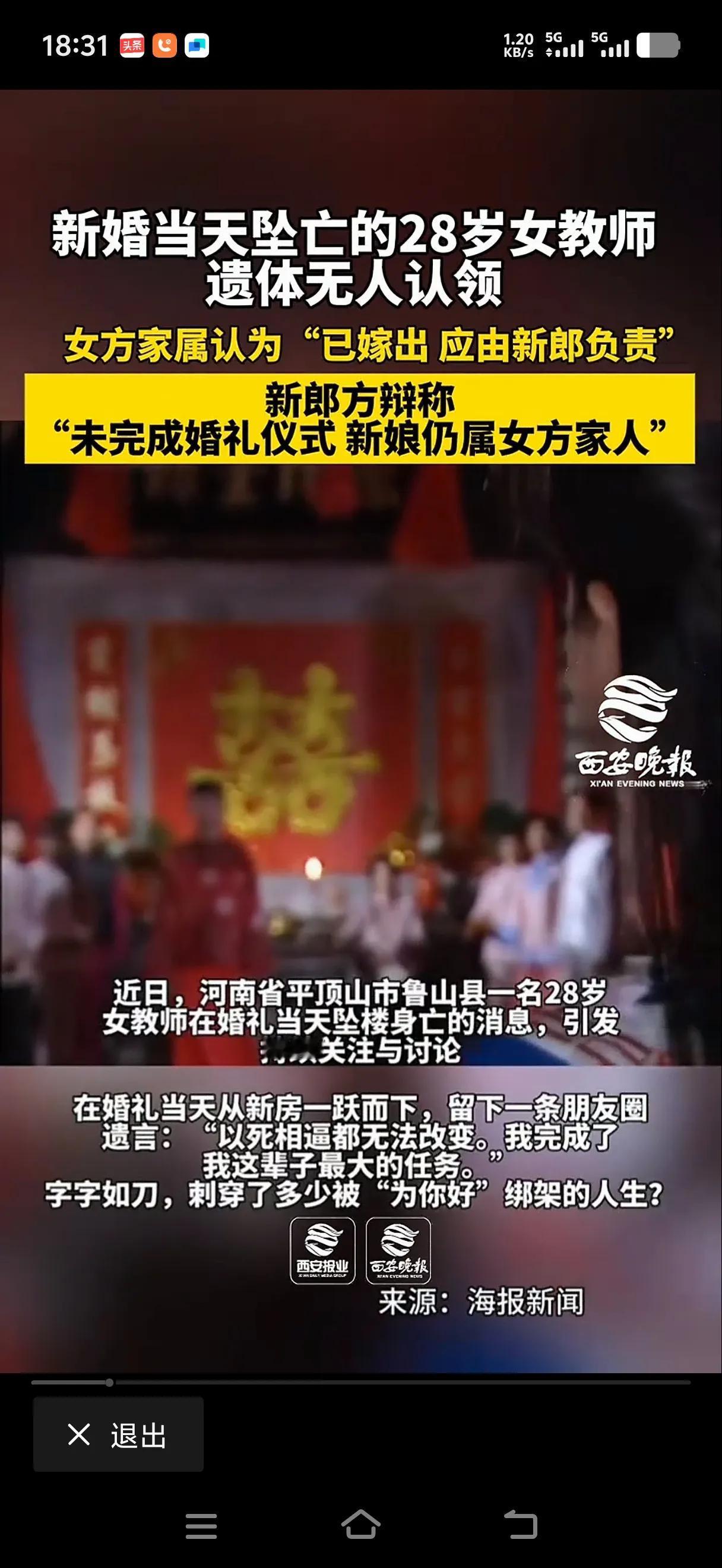 真的好悲哀啊!河南平顶山鲁山县婚礼当天轻生的28岁新娘遗体居然无人认领。亲生父母这边不理说已经嫁出去了,由新郎负责。 新郎这边说婚礼还没举行完成,新娘仍然是女方家的人,他们也不管。 哎,有血缘关系的都不管,还能指望没血缘关系的人管。