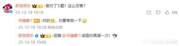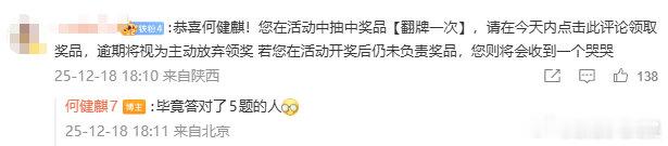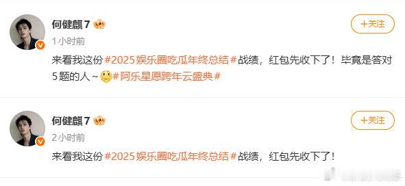 何健麒也抢红包何健麒答对了5题 参与2025娱乐圈吃瓜年终总结,答对后立刻发博:“红包先收下了!”不仅在评论区反复泫雅自己答对5道题的战绩,还特意编辑到了微博正文很有好胜心的帅哥一位!