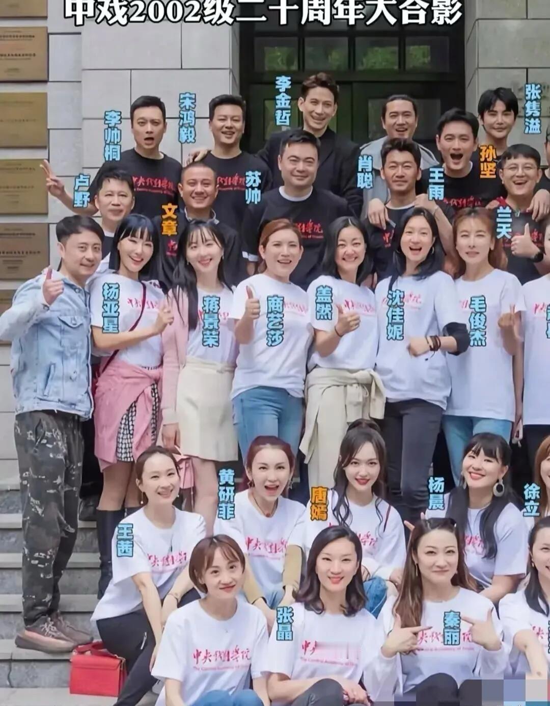 2002级中戏的女同学里能让人记得住名字的也只有唐嫣和朱亚文老婆沈佳妮。唐嫣长相一般,但她比较有演技,成为了家喻户晓的大明星。沈佳妮颜值不错,属于眉清目秀的那一种,但她出道这么久仍旧是不温不火的,也没有朱亚文出名。