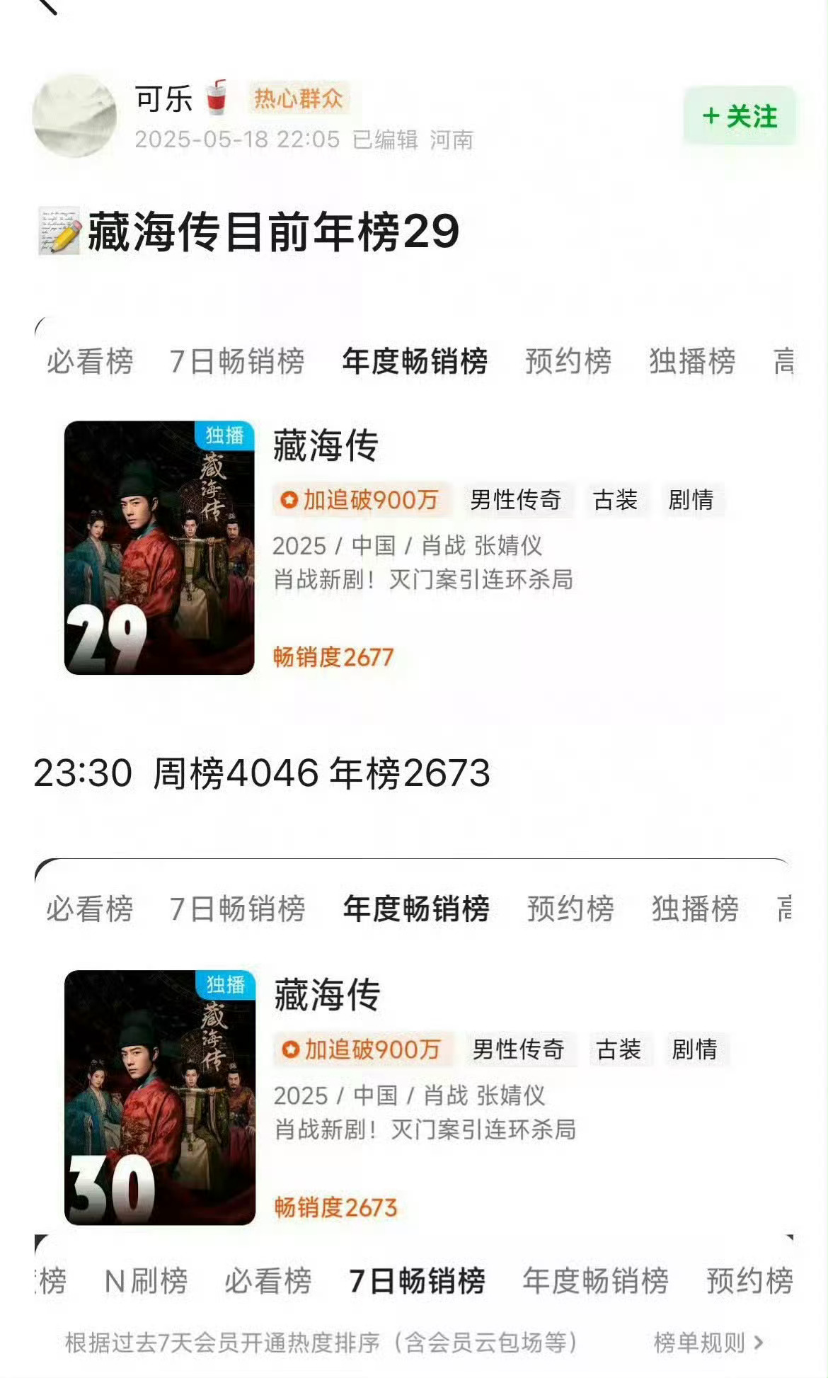 肖战粉丝要更新数据库啦,藏海传是开播2小时就进了优酷拉新榜33的,29小时进的是20名。怪我们藏海传特别牛的实绩太多了,导致这个都没啥人在意居然被拉出来造谣。