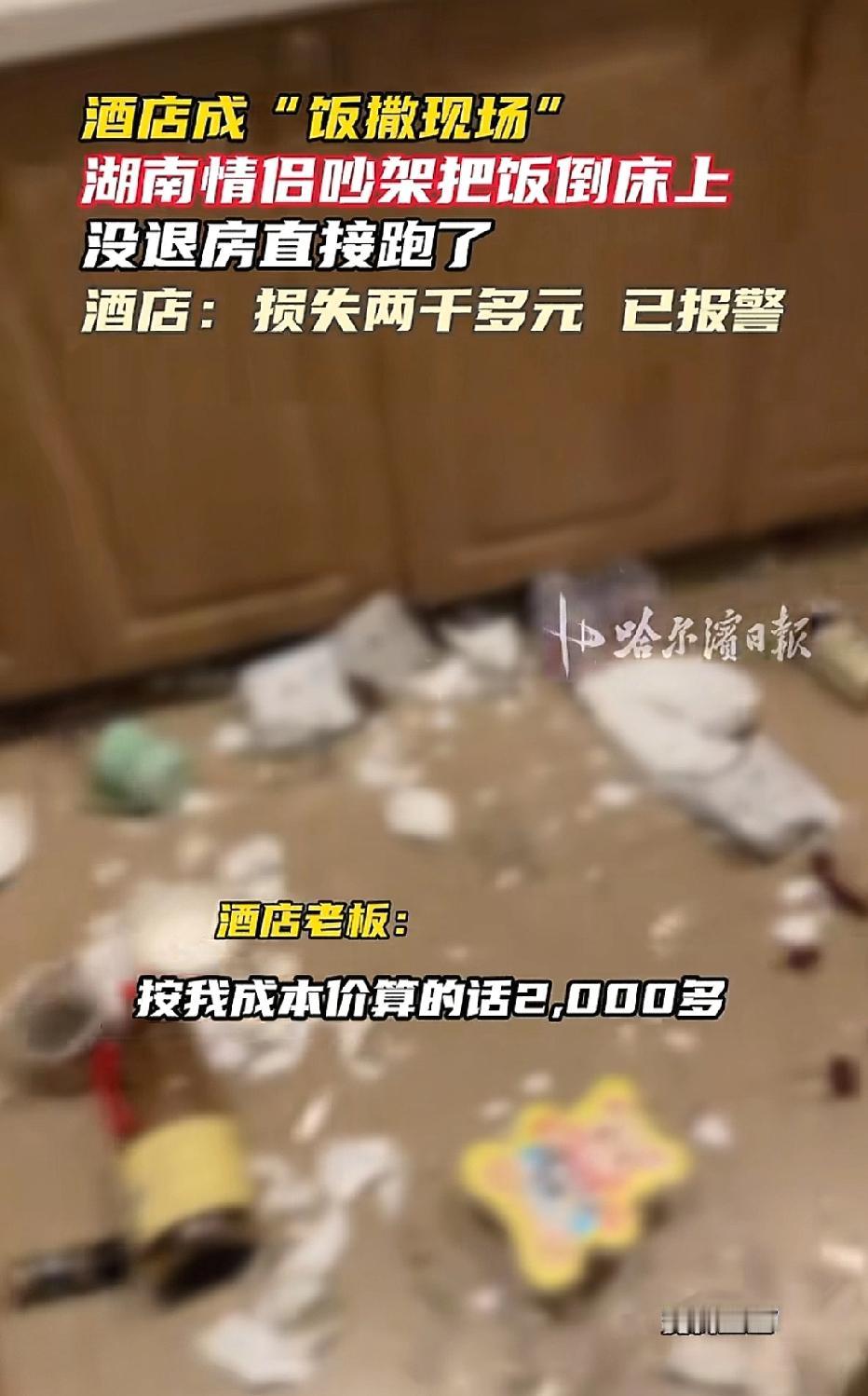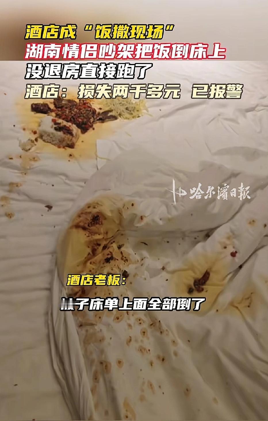 湖南长沙,男子带着女友入住酒店,两人点了份外卖,后因琐事吵架,女友气得当场将饭菜全倒在床上,把水杯摔在地,甚至把沐浴露倒在墙上和地板。事后,两人房卡都没退直接跑路,酒店老板气得报警,男子却说,是他女朋友搞的,他不知情。 我做酒店这么多年,没见过这么离谱的! 长沙的酒店老板刘先生(化名)气得报警,声音都在发颤。 他刚刚推开一间客房的房门,眼前的景象让他难以置信。 而更让他气愤的是,造成这一切的当事人,房卡都没退,就像没事人一样消失了。 12月17日,有一对情侣手挽手来到酒店前台,办理了入住手续。 女子点了一份外卖,外卖送到了他们的房间门口。 谁也没有想到,这份饭菜,竟然成了房间灾难。 两人准备用餐时,不知什么原因,女子的情绪变得激动起来,跟男友吵了一架。 随后,情况变得一发不可收拾。 女子在争吵中,做了一个令人吃惊的举动。 她把没有吃完的油腻饭菜,连同盒子,全部倒扣在干净洁白的床铺上。 男友被她的举动吓住了,开始指责女友,今晚不能躺床上睡了。 女友一听,又随手抓起桌上的水杯,狠狠地摔在地上。 这还没完,正在气头上的女友,又冲到浴室,将大瓶沐浴露全部挤出来,倒在墙上和地板上。 男子敢怒不敢言,这房间他也待不下去了。 两人冷静过后,谁也没有提退房和赔钱,甚至房卡都不退,一前一后悄悄离开了酒店。 当酒店的保洁员敲开房间门搞卫生时,发现房间乱七八糟的一幕,她吓了一大跳。 赶紧找来了酒店老板刘先生。 这才有了开头的一幕,刘先生很愤怒,床单被罩,甚至床垫都是油渍,卫生都很难清洗了。按成本价算,损失了2000多块。 刘先生想不通,酒店员工都没有跟情侣发生过争执,为什么他们会这样做。 最终,警察找到这对情侣,但男子摆摆手扯清关系,说两人吵架了,不知道房间的情况,可能是女友搞的。 刘老板很郁闷,你们吵架,拿酒店撒什么气!他要求对方回酒店处理,再谈赔偿事宜。 有人说,情绪上头时,人确实容易冲动,但成年人的标志,就是懂得为自己的行为负责。 《民法典》第1165条规定,行为人因过错侵害他人民事权益造成损害的,应当承担侵权责任。 女子故意倾倒饭菜、摔碎水杯、浪费沐浴露,对酒店的床品、卫浴设施等财物造成了实际损害。 她需要全额赔偿酒店的直接经济损失,包括物品更换费、清洁费等。 虽然男友没有直接动手,但他和女友是共同入住人,且全程目睹了女友的侵权行为,既没有制止,也没有在事后主动联系酒店处理。 根据民法典的公平原则和共同入住的附随义务,他不能以“不知情”为由逃避责任,需要和女友承担连带赔偿责任。 对此,你怎么看?