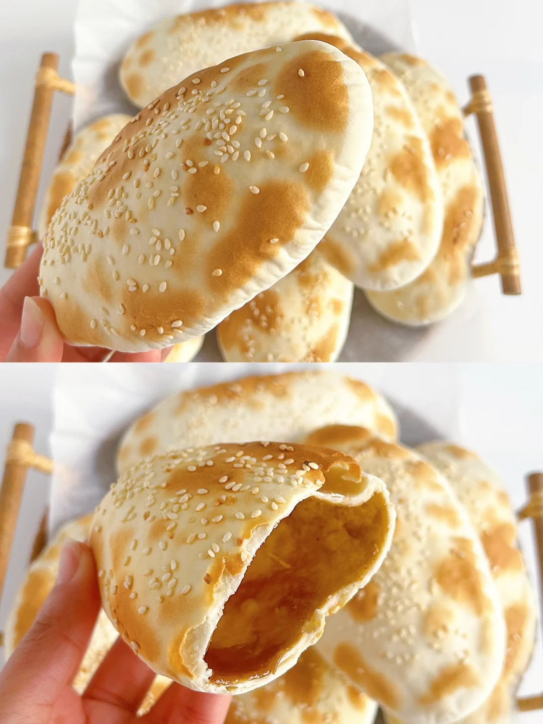 烤好的空心糖饼,个个空心鼓大泡,又香又酥又脆,巨好吃!