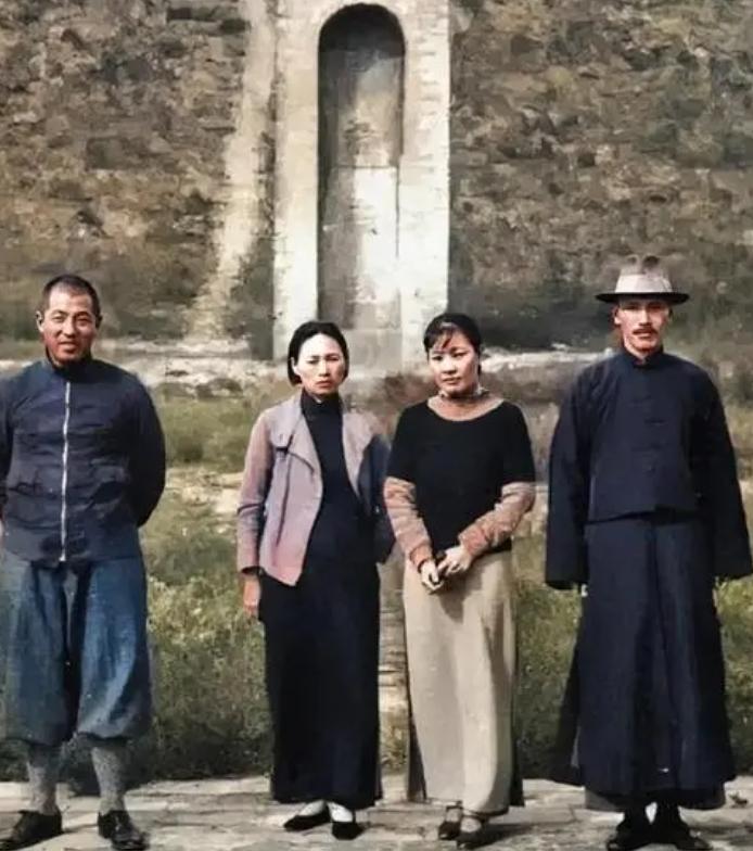 这两张老照片拍摄于1934年的10月21号,这一天,老蒋夫妻去到陕西的咸阳,来到这里参观周陵。 周陵里面有周文王陵和周武王陵两座陵墓。 当时,陪同老蒋夫妻去周陵游玩的还有张学良、杨虎城、邵力子夫妇。 这样来看的话,图一里面那个背对着镜头的女子,应该就是傅学文(邵力子的妻子)。 从图一的背景图来看,山上光秃秃的,没有丝毫的生机。 1934年的中国,正值日寇铁骑横扫华夏的时候。 老蒋夫妻能在百忙之中去周陵,怕也不是游玩,难道是为了向老祖宗借福气吗? 1935年的11月,小日本策划了所谓的“华北自治运动”,扩大了对中国的侵略行径,以至于当时的民族危机空前严重。 这时候,也不会知道他俩还有没有心思去周陵祈福了。