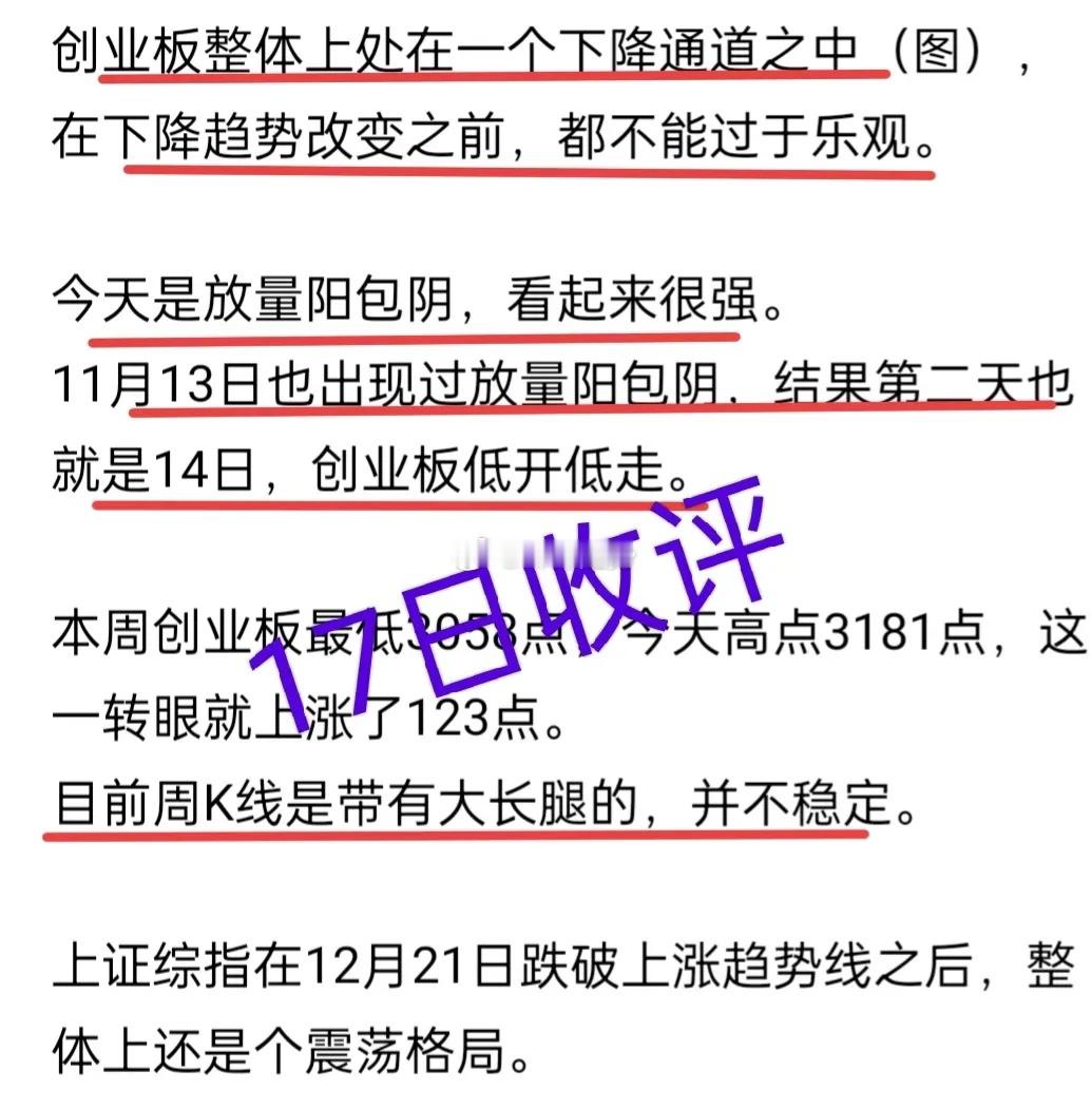 A股:峰哥今天开盘前讲过,见好就要收一点!今天大盘缩量震荡,明天大盘或将再次考验三重底线3860点区域。1,中期均线是判断中期趋势的重要参考在大盘趋势未扭转之前,反弹就是反弹,短线操作,见好就要收一点!因为,我们面对的是翻手为云覆手为雨的量化!中期均线是判断市场中期趋势的重要参考,中期趋势转折主要看中期均线。创业板11月6日,首次出现了MA20均线下穿MA30均线。峰哥11月6日提醒过创业板和深成指的风险(图)。那个时候,创业板还在3200点上方。MA20均线上穿MA30均线,且均线都已经趋于转折向上。通常认为,大盘就具备了中期上涨的条件。目前上证综指和深成指的20均线都还在30均线下方。也许有人会说,如果以后几天20均线上穿了30均线,那现在不是绝佳抄底机会吗?这话说的没有错,但那是“如果”,不具有相对确定性。2,大盘或将再次考验三重底线区域三重底线3860点一线,是渔夫上周提到的大盘支撑区域。今天大盘3857点低开,最低3856点,也就是在三重底线区域。今天早盘前一个小时,大盘低开高走,最高到了3879点,之后的三个小时中,大盘基本上是横着走的,下午最高冲到了3888点。显然,这是大盘无力上攻的状态。既然无力向上,那么就存在向下寻求支撑的可能性。从短线来说,三重底线3860点一线区域就显得比较重要了(图)。守住了3860点一线,大盘短期内还有见到3900点的机会。否则,将再次考验3800点区域支撑。创业板不太好看。昨天盘后峰哥就讲了,周线带有大长腿,不稳定(图)。3,趋势推演实际上,峰哥希望大盘能攻击到MA30均线上方(目前位于3920点一线)。这样,就能确定3800点一线就是中期底部区域。大盘站上MA30均线之后,再来个第三次探底。在春季行情到来之前,把中期底部夯实一些。如此这般折腾折腾,明年上半年还能有不错的收获个人观点,仅供交流,不构成投资建议!理财有风险,投资需谨慎!大盘行情大盘分析行情大盘要跌吗金饰克价涨到1359元