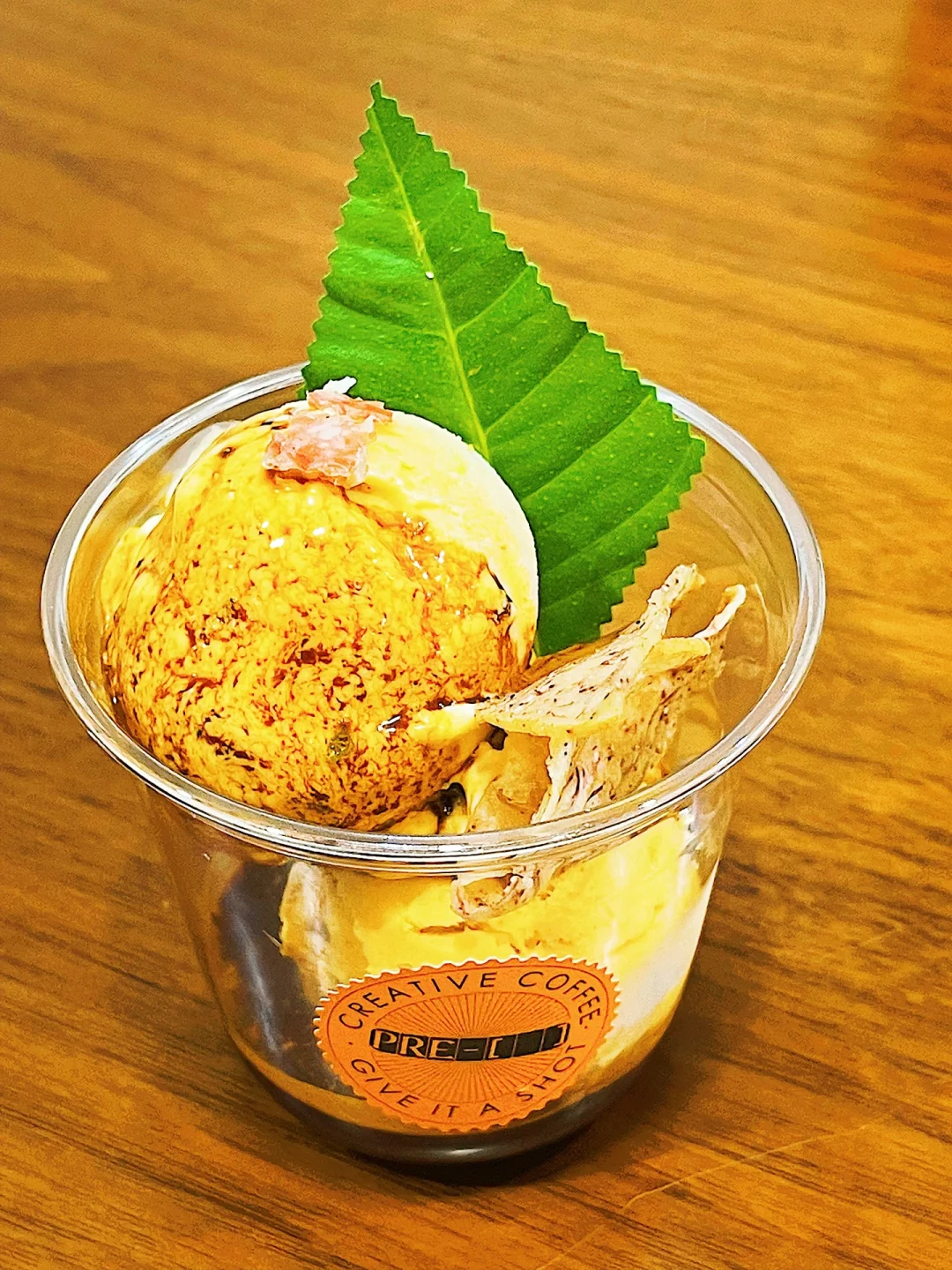 ✔️店里除了咖啡创意特别,沙茶酱雪糕也很惊艳💯将沙茶酱和冰淇淋融合在一起不会变成黑暗料理‼️用萨拉米、芋头片点缀,再淋上意式浓缩🔎甜中带咸,咸中带点咖啡苦💡口感层次分明🎏不夸张的说~是我目前吃过的雪糕里最有记忆也最好吃的了。