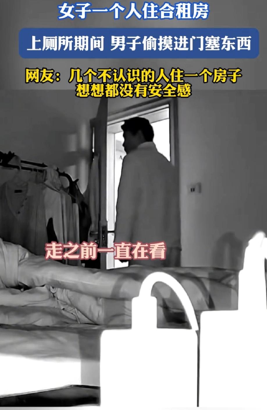 太可怕,女生千万不要一个人租合租房 贵州,一女生早上起床发现桌子上有闪光,查看监控,发现男子趁着女生上厕所几分钟时间,偷偷摸摸跑到女生房间里面,在桌子上塞了摄像头。 更恶心的是,男子放完后准备走的时候,停留了一会,眼睛盯着女生的衣架看,应该是在看内衣内裤。 真是太可怕了!没翻东西,仅仅只是放了东西,说明他经常来女生房间。建议女生保留视频,赶紧报警!保不齐,房间其他角落,厕所也被安装了摄像头! 为了人身安全,女生还是尽可能不要租合租房,或者认识的人合租也会保险一点。不要小瞧人性,这回是监控,下回可能是偷窃,再下回可能是劫色了。 太可怕了!真的太可怕了!