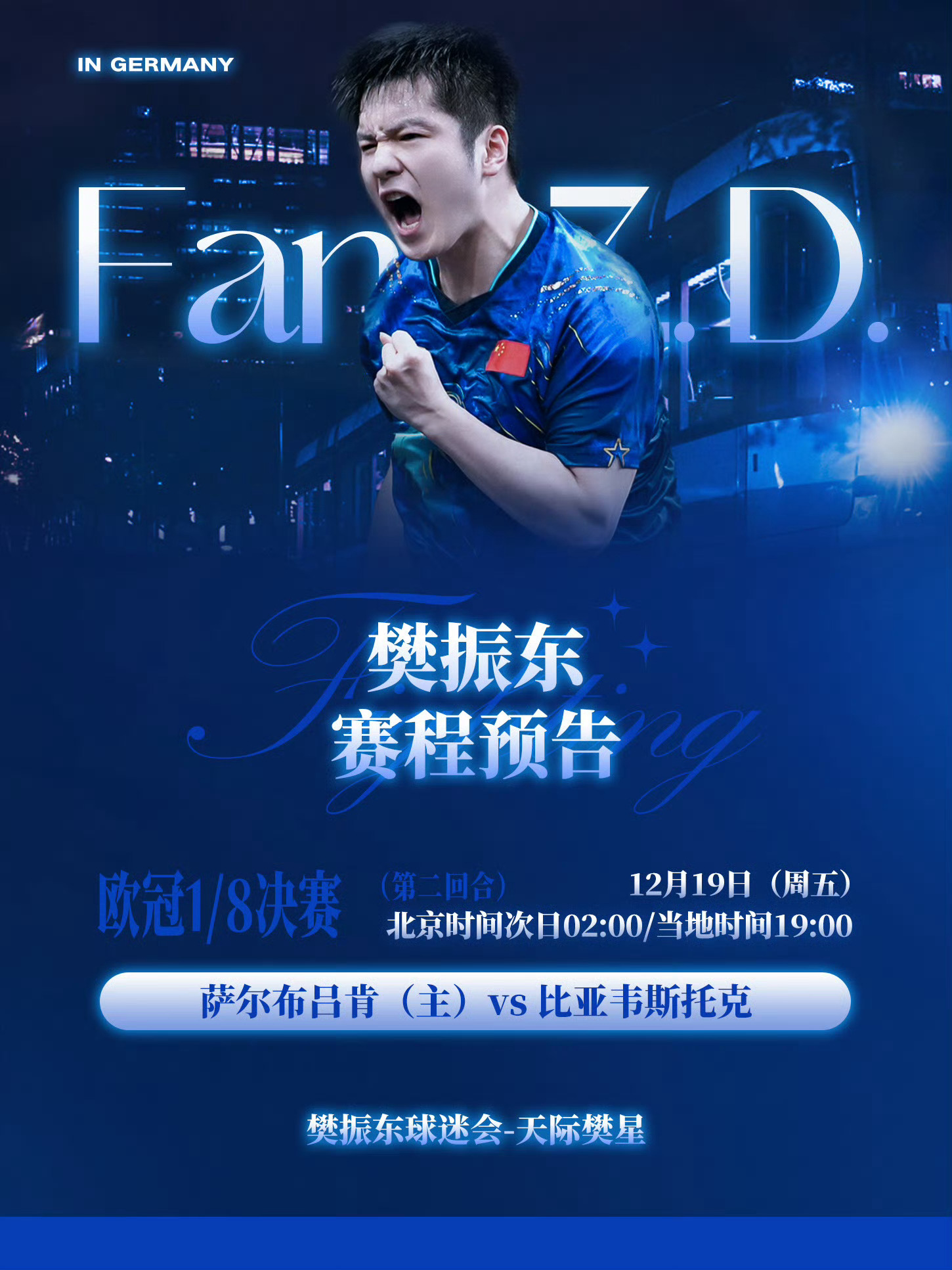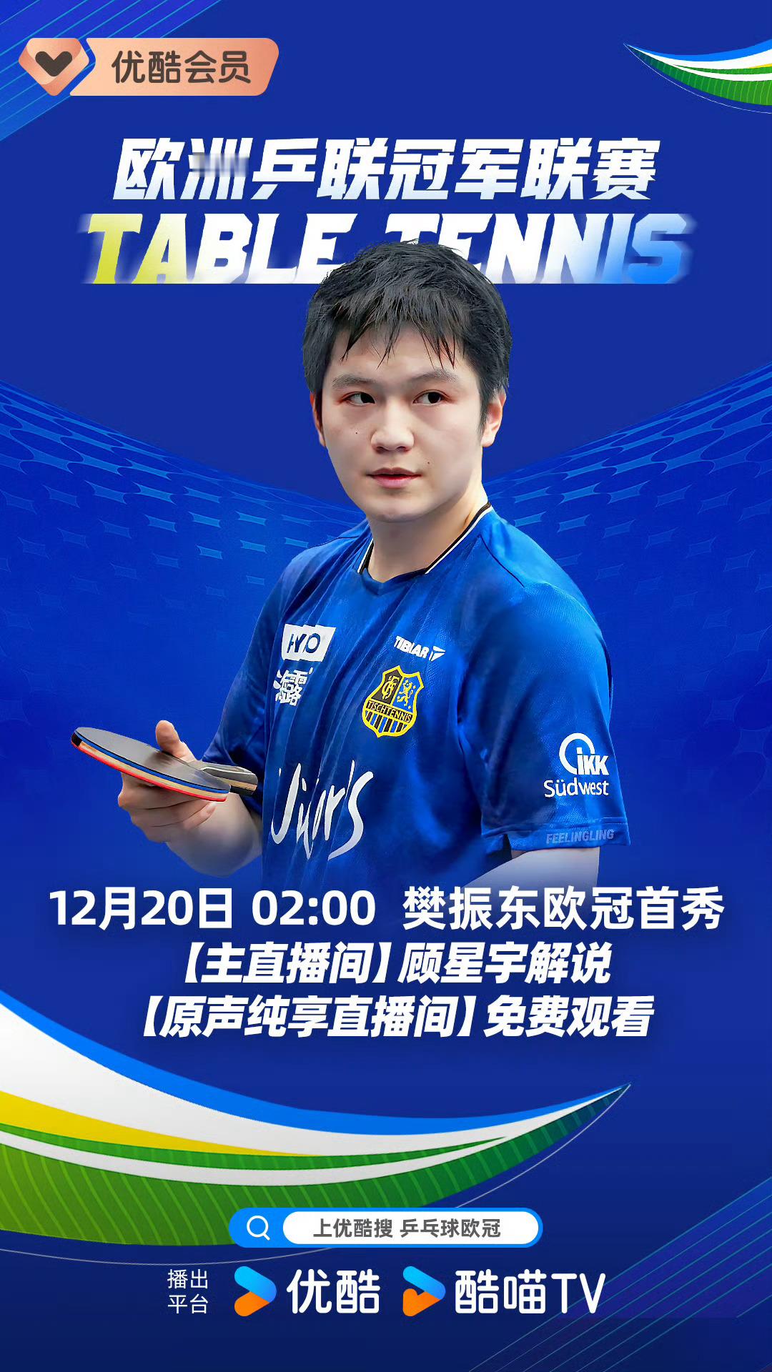 期待樊振东欧冠首秀优酷、爱奇艺、抖音……均可收看欧冠比赛,一起迎接美好周末吧樊