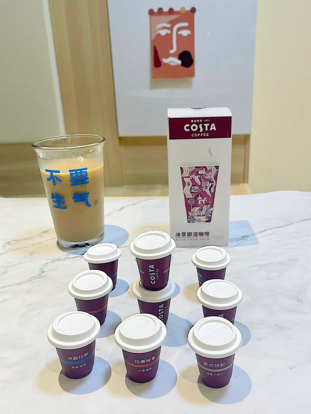 🌞我每天上班搬砖的时候,到了公司总会点上一杯咖啡,但是配送时间至少要30分钟以上,咖啡师朋友给我Anli了COSTA 冰萃即溶咖啡✔️每一个迷你杯装着3g的咖啡粉,用的是高品质的阿拉比卡咖啡豆,即溶即冲马上拥有一杯门店同款咖啡🔜真令人心动马上Get了!喝了一周了!给大家分享冰萃纯咖啡的3种味道和隐藏Diy搭配法!