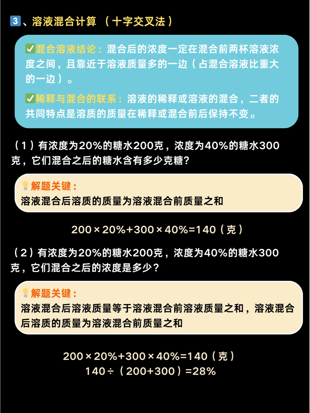 ✅混合溶液计算(十字交叉法)