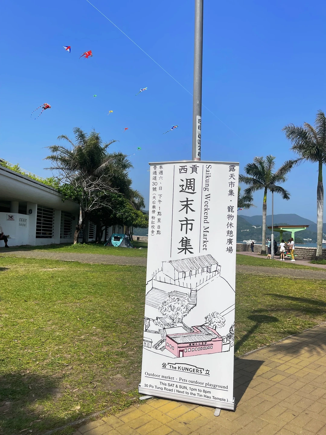 🌊看海真的很看天气☀️那天天气很好,沿着码头的海岸线走一圈,偶遇西贡的周末市集,很多香港人带着自己的爱宠过来溜溜,也看到很多人过来放风筝。