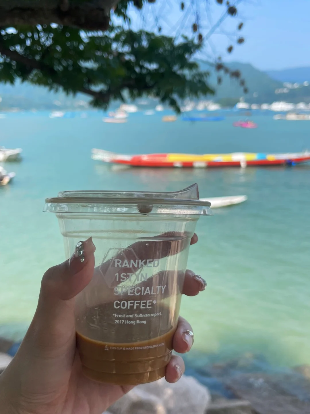 🚶♀️再走到最前面的海岸线🌈接近香港MH酒店那边的岸边,有的人躺在石阶上睡觉,有的人带着三五好友过来野餐唱歌,而我和我朋友买了咖啡坐在石阶上看海,海的颜色真的很像在泰国的皮皮岛,真美真舒服!