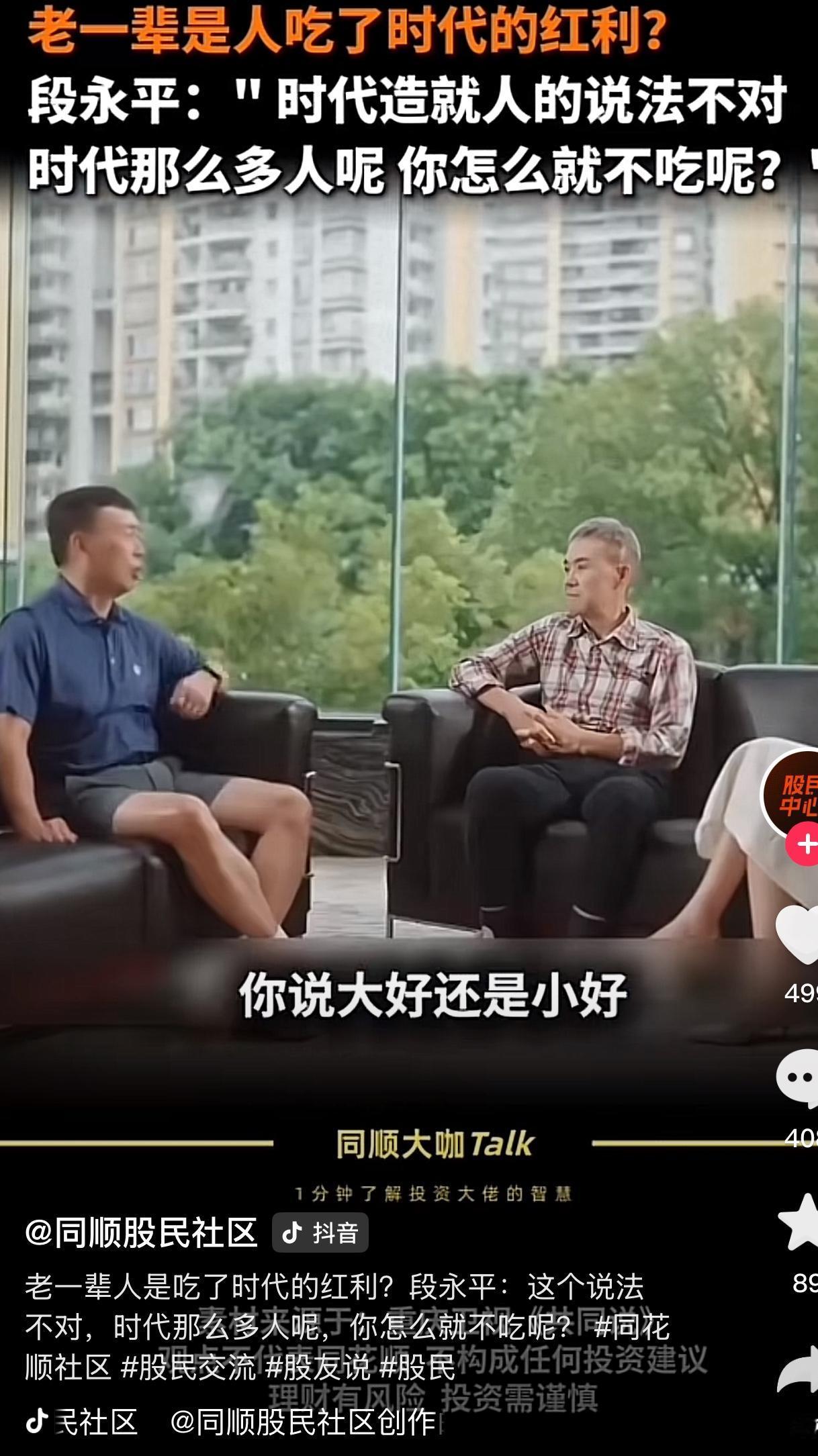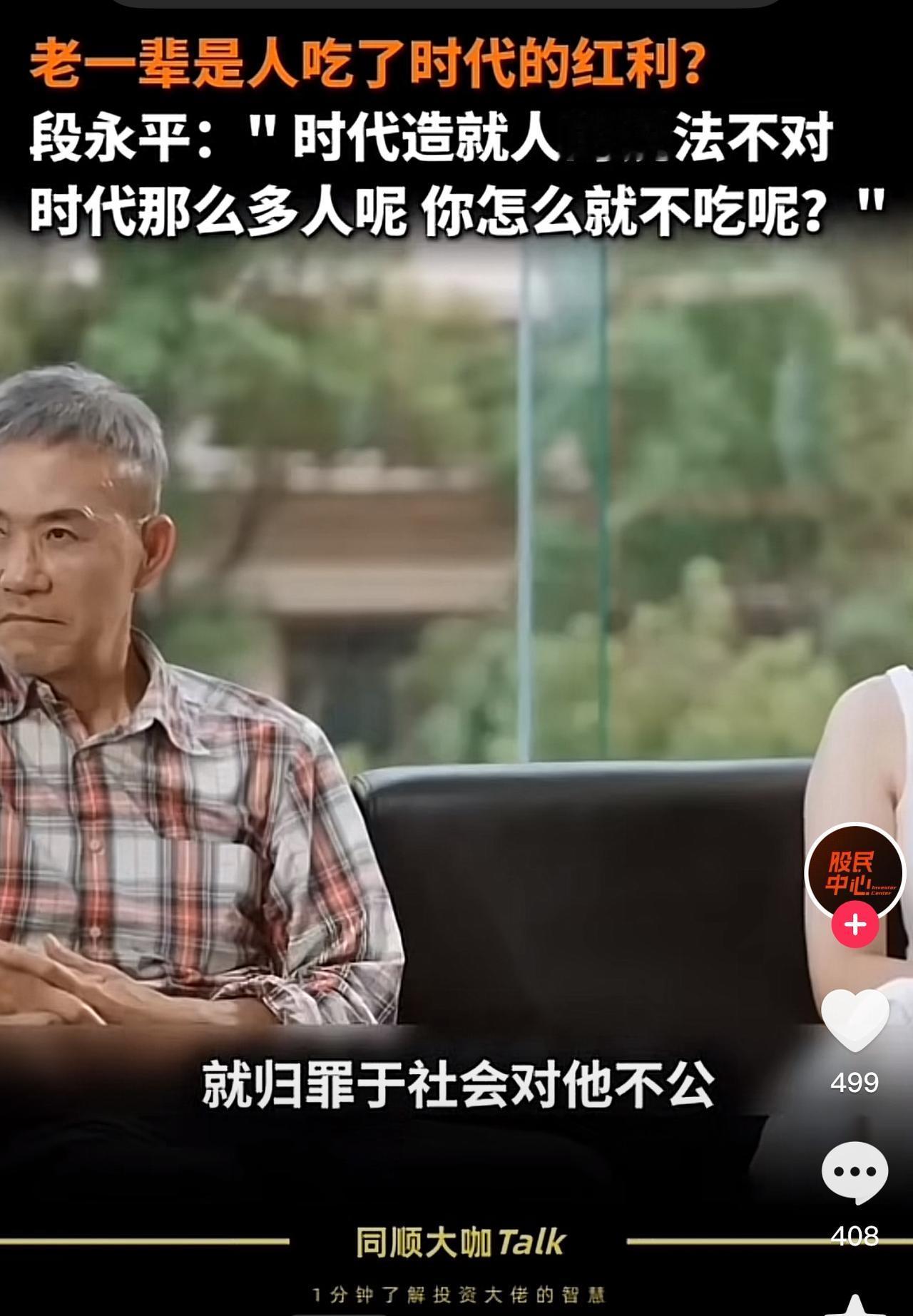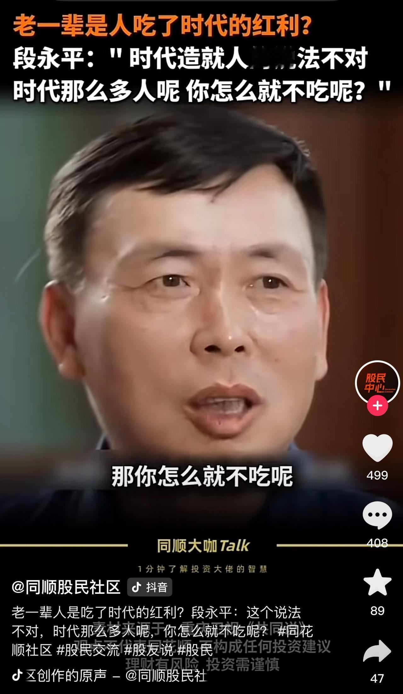 段永平对个人的成功是否是吃了时代的红利持反对态度,铜认为这个时代这么多人,为什么