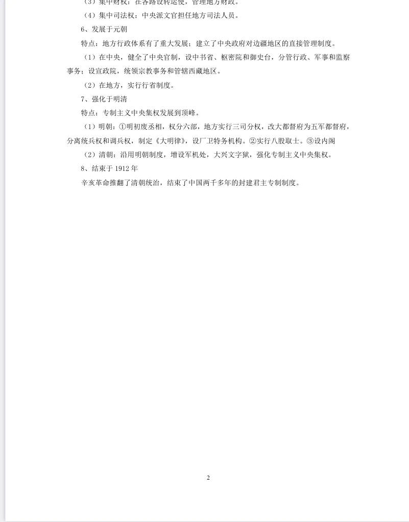 中央集权制度是一种国家政权的制度,以国家职权统一于中央政府,削弱地方政府力量 为标志。中国古代的政体即封建专制主义中央集权制度,主要特征是皇帝个人专断独裁,集 国家最高权力于一身,从决策到行使军、政、财大权都具有独断性和随意性。 公元前221年,秦始皇在统一六国以后就着手建立和健全专制主义的中央集权制度,以 巩固其对全国的统治,此后,这种政治体制在中国延续了 2000 多年。