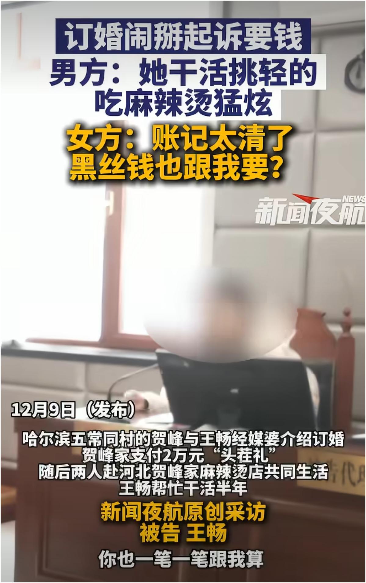 看到这个新闻,我真是又好气又好笑。黑龙江哈尔滨五常市的一对同村男女,经媒婆介绍订婚后,男方家给了2万元"头茬礼",女方到男方家的麻辣烫店帮忙干了半年活。结果男方突然变脸,以女方"挑轻巧活吃得多"为由提出分手,还一纸诉状告到法院,要求返还2万元彩礼和3万元恋爱花销。这理由也太奇葩了吧! 这事儿发生在12月9日,据黑龙江都市频道《新闻夜航》报道。两人是经媒婆介绍认识的,男方家支付了2万元"头茬礼"后,女方就到男方家的麻辣烫店帮忙干活,共同生活了半年。这期间,男方对女方的态度越来越冷淡,最后竟然以"挑轻巧活吃得多"这种理由提出分手。更绝的是,男方不仅要求返还2万元彩礼,还要求返还3万元恋爱花销,把女方告上了法院。 法院审理后,法官明确表示,恋爱中的共同消费和具有情绪价值的私密物品支出不予支持。彩礼返还是基于公平原则,最终双方达成调解:女方及其父亲返还1万元彩礼,男方放弃其他诉求。 说实话,这个男方的做法真的让人无语。"挑轻巧活吃得多"这种理由,听起来就像是在找茬。在麻辣烫店帮忙干了半年活,就算真的吃得多,那也是正常劳动消耗啊。而且女方在店里帮忙,难道不应该管饭吗?现在倒好,不仅要把人赶走,还要把彩礼和恋爱花销都要回去,这算盘打得也太精了。 从法律角度看,法院的判决还是很公正的。恋爱期间的共同消费,比如一起吃饭、看电影、买礼物这些,本来就是双方自愿的,不能分手后就要求返还。至于彩礼,虽然法律没有明确规定必须返还,但考虑到双方共同生活了半年,女方也付出了劳动,返还一部分是比较公平的。 这件事也反映出农村婚恋中的一些问题。很多地方还保留着"头茬礼"这种习俗,男方家给彩礼,女方到男方家生活,这种模式本身就存在很多问题。一旦感情出现问题,双方往往会在彩礼问题上产生纠纷。而且,女方在男方家帮忙干活,这种劳动往往得不到应有的认可和尊重,一旦分手,就会像这个案例一样,被说成"挑轻巧活"。 我觉得,婚姻和感情不是买卖,不能把彩礼当成交易。两个人在一起,应该是互相理解、互相尊重,而不是斤斤计较谁吃得多、谁干得少。如果一开始就抱着这种心态,那这段感情注定不会长久。 这件事也提醒我们,在婚恋关系中,双方都要保持独立和自尊。不要因为收了彩礼就觉得低人一等,也不要因为付出了就觉得自己吃亏。感情是两个人的事,需要双方共同经营和维护。 你对这件事怎么看?你觉得彩礼应该返还吗?欢迎在评论区分享你的看法。