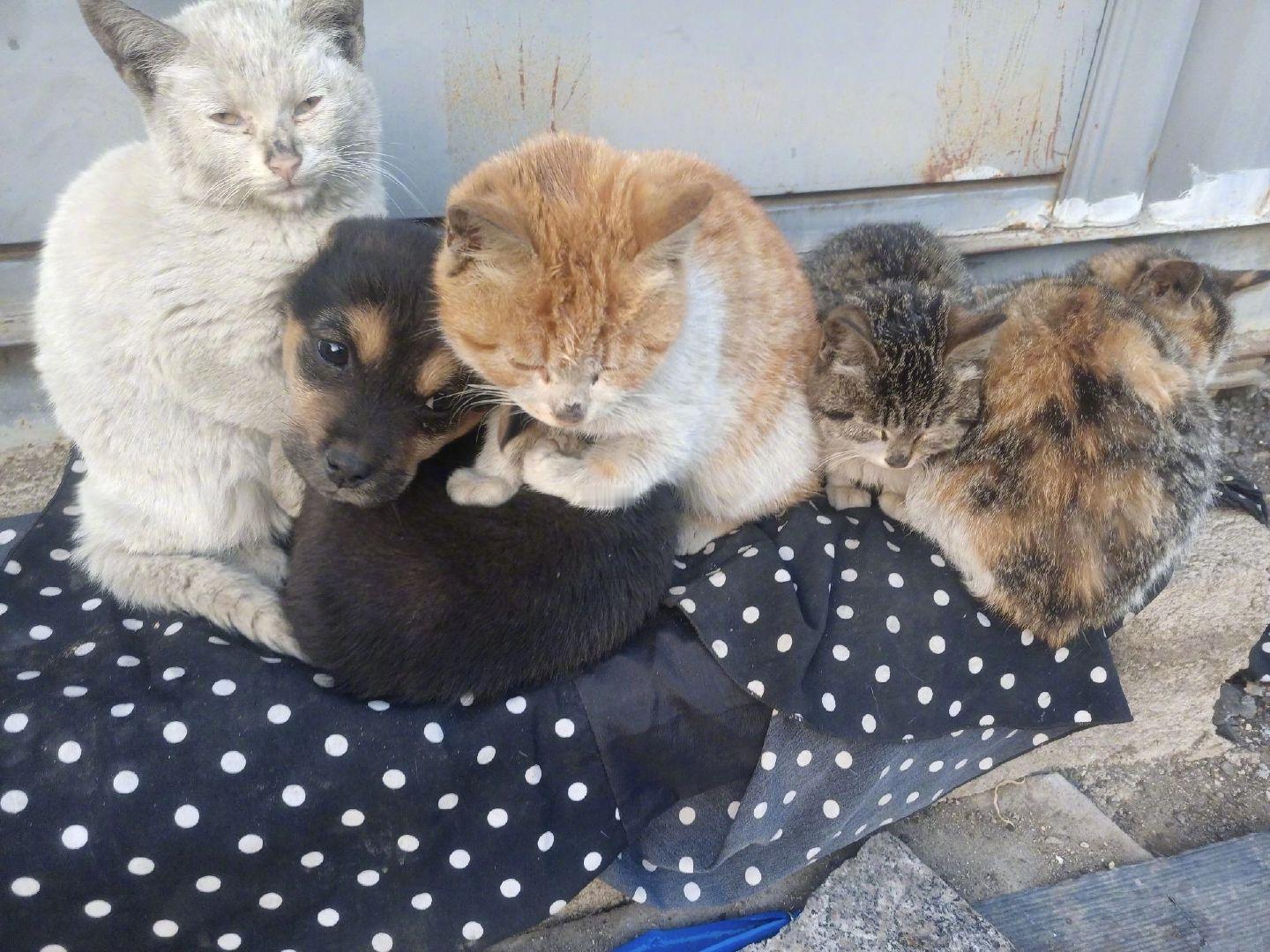 路边发现抱团取暖的流浪狗和流浪猫,每一种生命都值得被善待关爱流浪动物