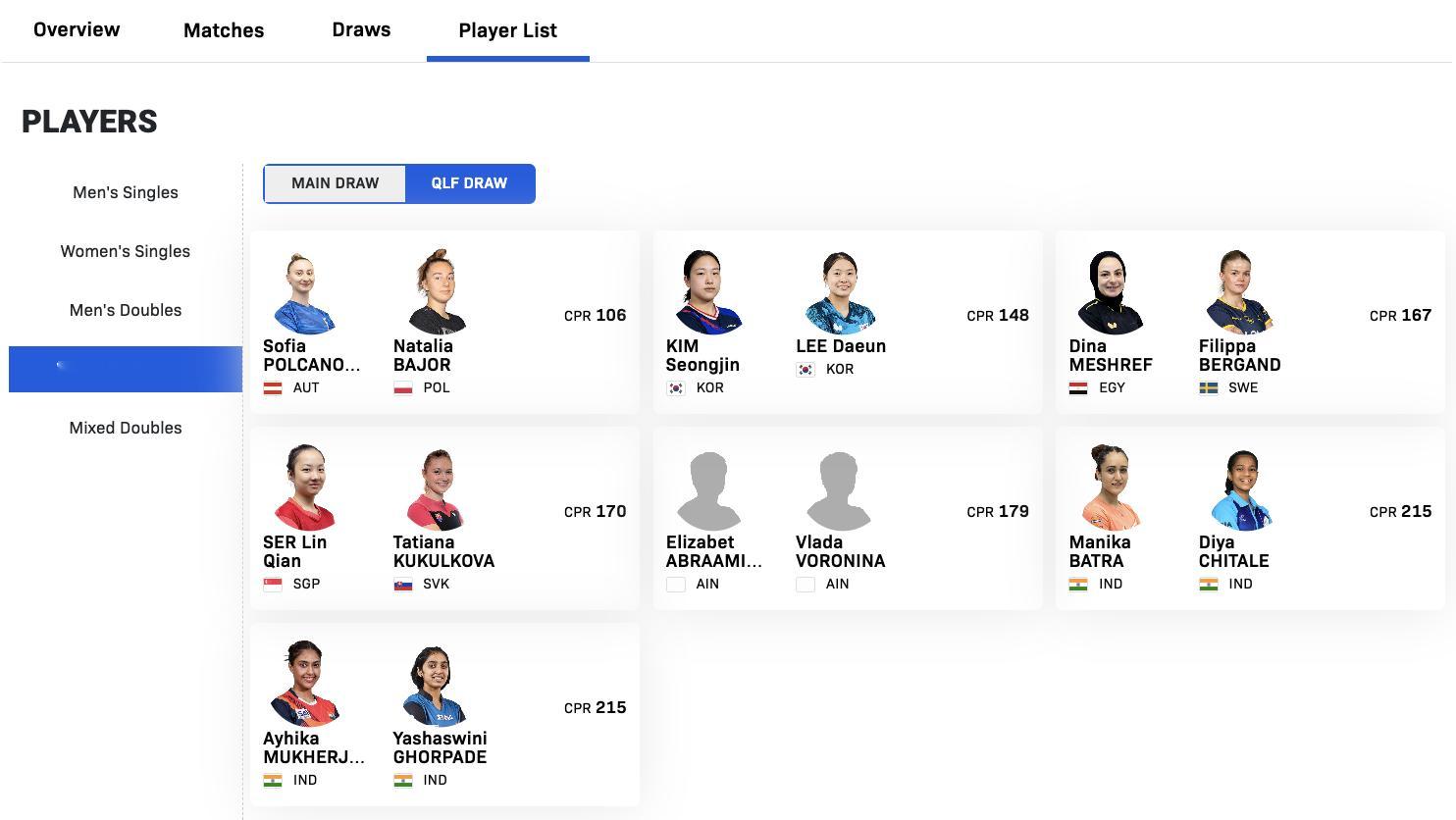 WTT球星挑战赛多哈站1.13-1.18丨女双外协参赛名单【正赛】柳汉娜/金娜英🇰🇷、大藤沙月/横井咲樱🇯🇵、申裕斌/朱芊曦🇰🇷、杜凯琹/吴咏琳🇭🇰、佐藤瞳/芝田沙季🇯🇵【资格赛】波尔卡诺娃🇦🇹/巴约🇵🇱、金成珍/李多恩🇰🇷、梅谢芙🇪🇬/博嘉德🇸🇪、舒麟茜🇸🇬/库库洛娃🇸🇰、沃罗宁娜/阿布拉米安(AIN)、巴特拉/奇塔莱🇮🇳、A·穆克吉/格尔帕德🇮🇳