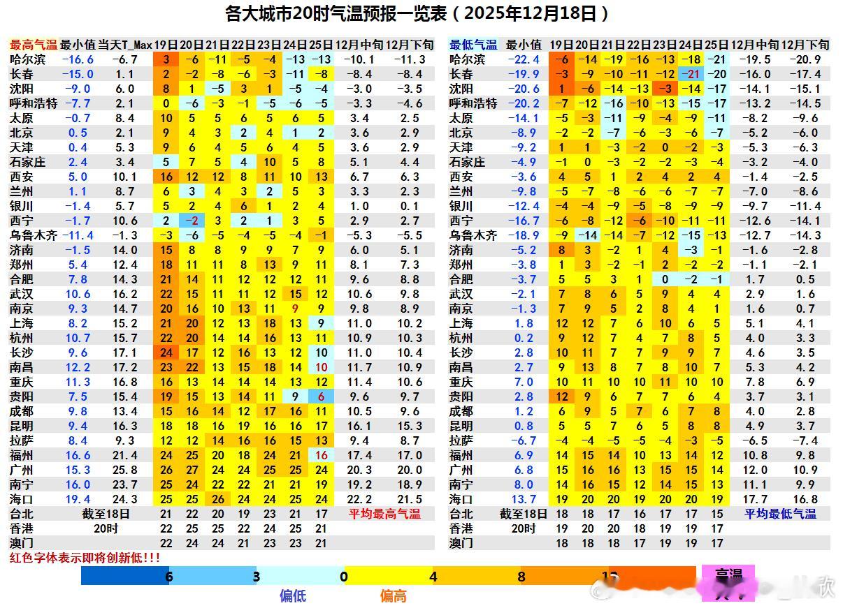 【气温坐电梯】今天最高气温,宁夏海原14.1℃、甘肃灵台16.6℃、陕西长武12.4℃、镇安18.9℃,打破当地12月中旬最高气温纪录。明天在黑龙江吉林山东江苏安徽湖北湖南部分地区,也有可能暖得接近或打破12月中旬纪录。但明天冷空气会影响甘肃宁夏内蒙古等地,内蒙古中部会出现10℃以上降温,而黑龙江局地升温超10℃。但很快,后天黑龙江就将成为北方地区的降温中心,局地降温10-15℃。而且在陕西湖北重庆交界一带,后天也可能出现10℃以上的剧烈降温。21日强降温核心区转移到浙江中部,局地降温也会有10-16℃。22日中东部地区大多升温,23日江南多地继续升温,但内蒙古又会出现明显降温,24日降温重点在黑龙江和吉林。总体来看,19-21日、22-24日将有两波冷空气导致降温。而在冷空气到来前的间歇期,气温又会明显上升。气温就如同坐电梯,上上下下。东北地区的起伏最剧烈。从今天算起哈尔滨最高气温高低点变化:零下7℃-零上3℃-零下11℃-零下4℃-零下13℃。沈阳未来最低气温的变化:零上1℃-零下14℃-零下3℃-零下17℃。